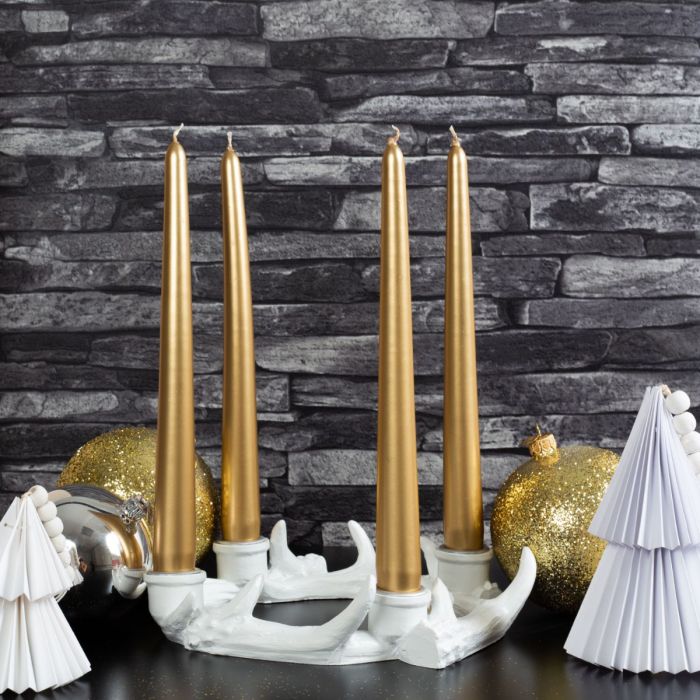 Una decorazione brillante per l'Avvento! Non deve essere sempre una corona ad accompagnare l'Avvento: le candele a bastoncino insieme alle palline argentate e dorate creano un insieme elegante per le vostre decorazioni natalizie. Il bouquet di amarilli rossi e rami di pino dorati in vaso è un bel tocco di colore sullo sfondo. Disposte con disinvoltura sul tavolo del soggiorno o sulla credenza, attirano lo sguardo e si abbinano perfettamente agli alberi di Natale bianchi e alle candele galleggianti. Acquista il look!