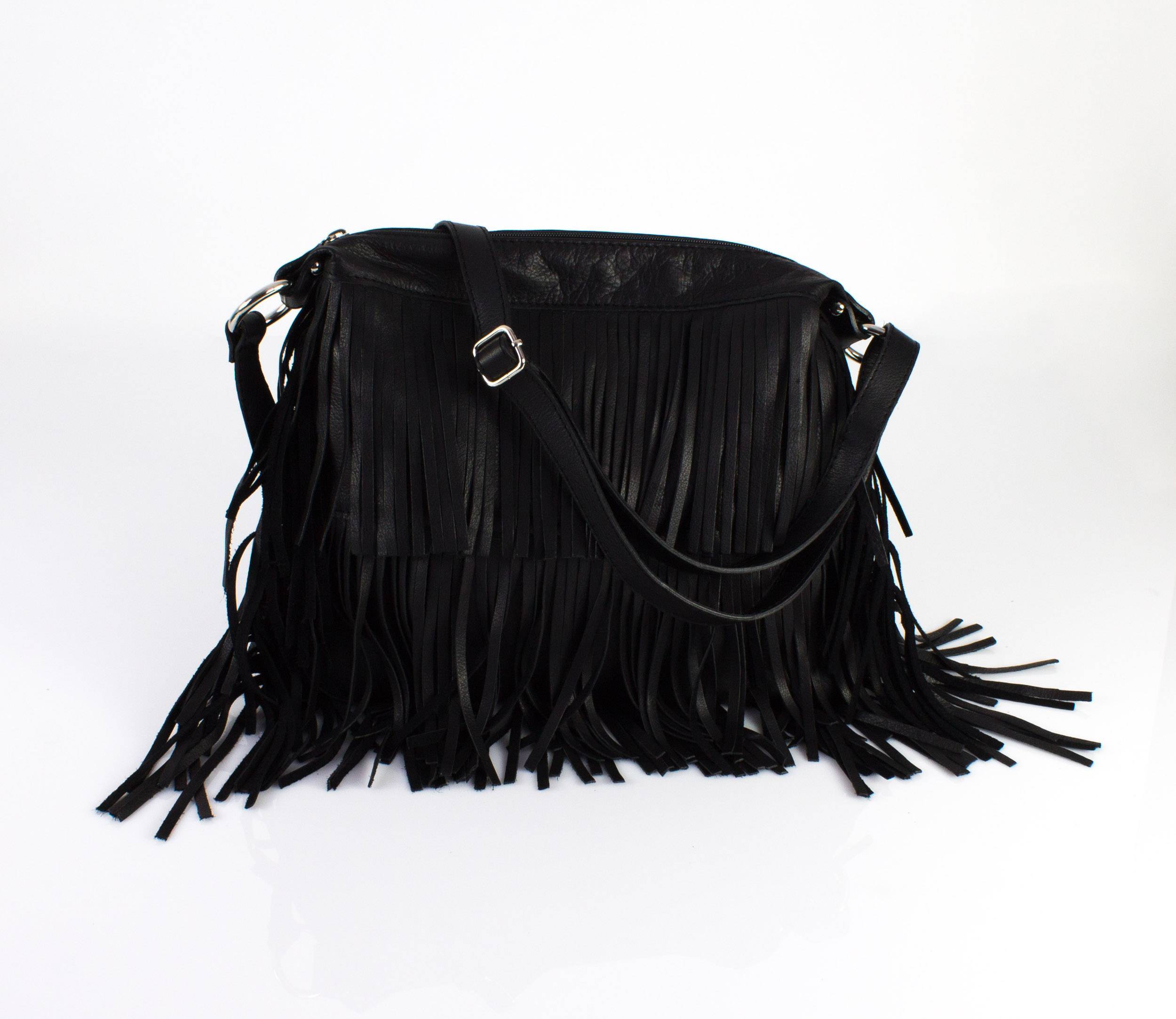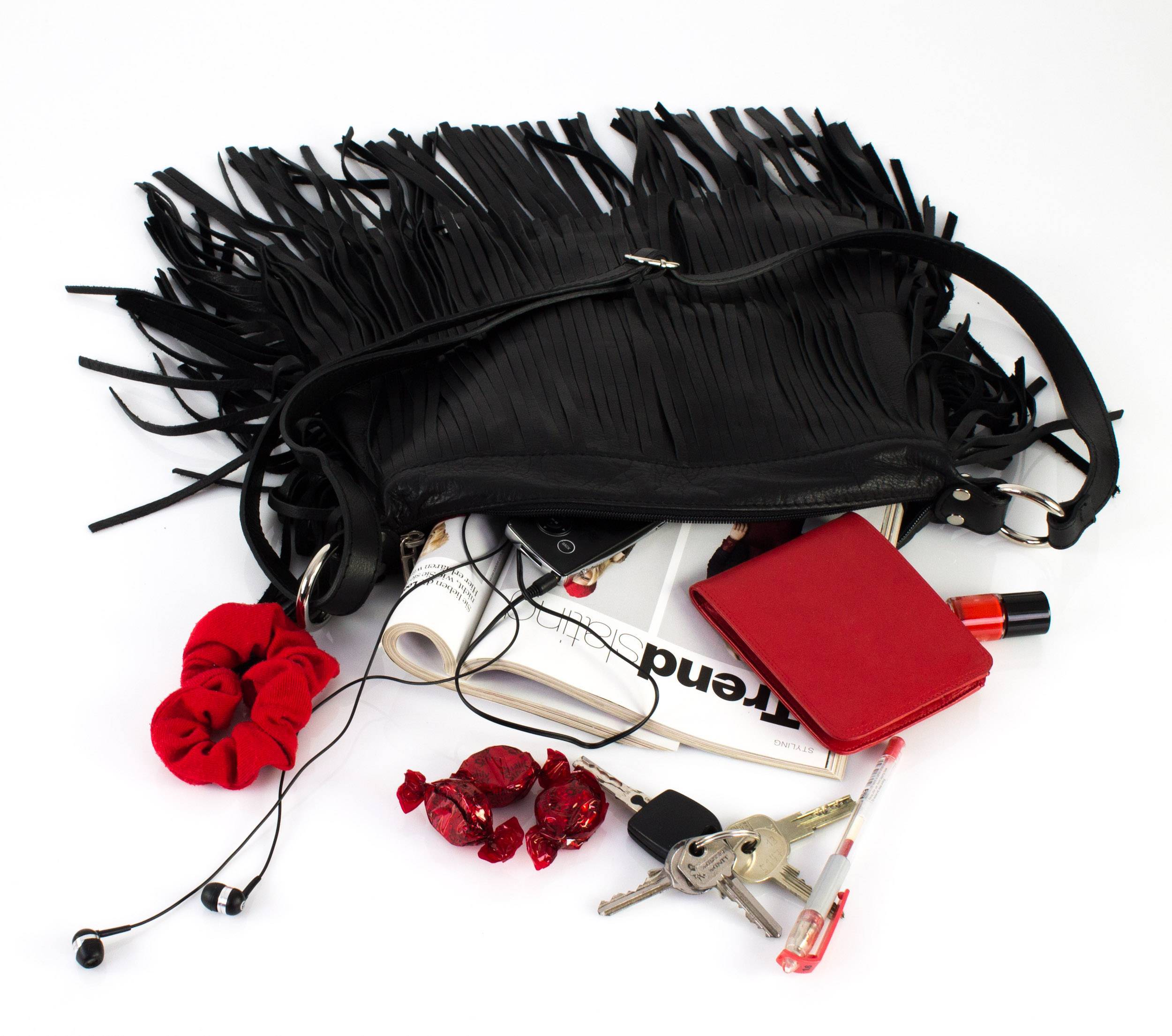 Borsa a tracolla casual NAVAJA in look indiano con molte frange in pelle. La borsa per tutti i giorni rende il tuo outfit qualcosa di molto speciale. Non è solo straordinario, ma anche un eye-catcher che attira lo sguardo verso di te.