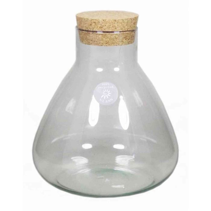 Bottiglia in vetro PEPPA, con coperchio di sughero, conico/rotondo, trasparente, 20cm, Ø7cm/Ø16,5cm