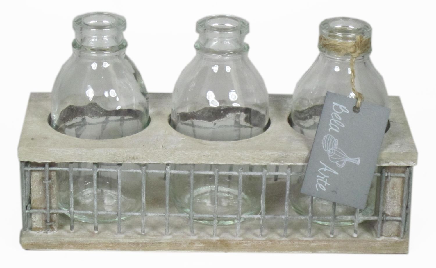 - 3 bottiglie su un supporto decorativo