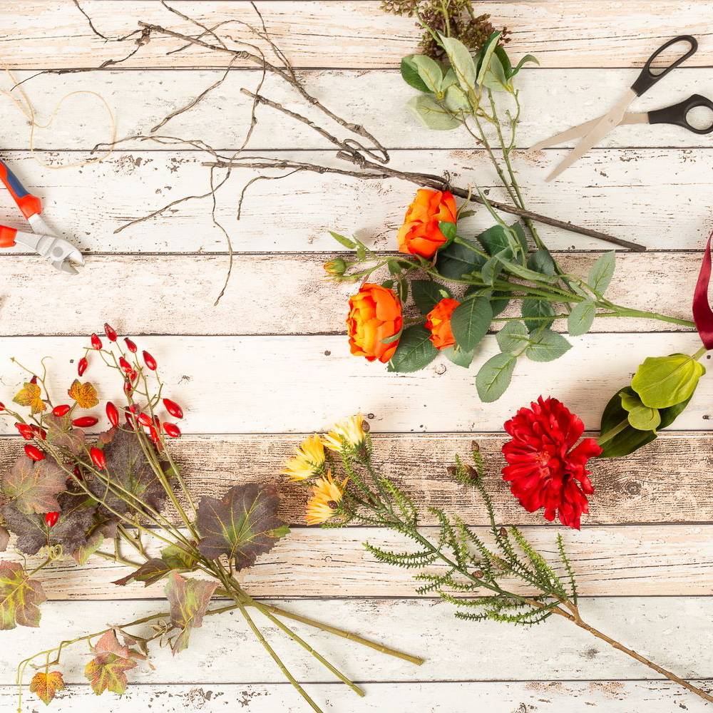 Bouquet artificiale autunnale HELIANTA, arancione-marrone, 40cm, Ø30cm