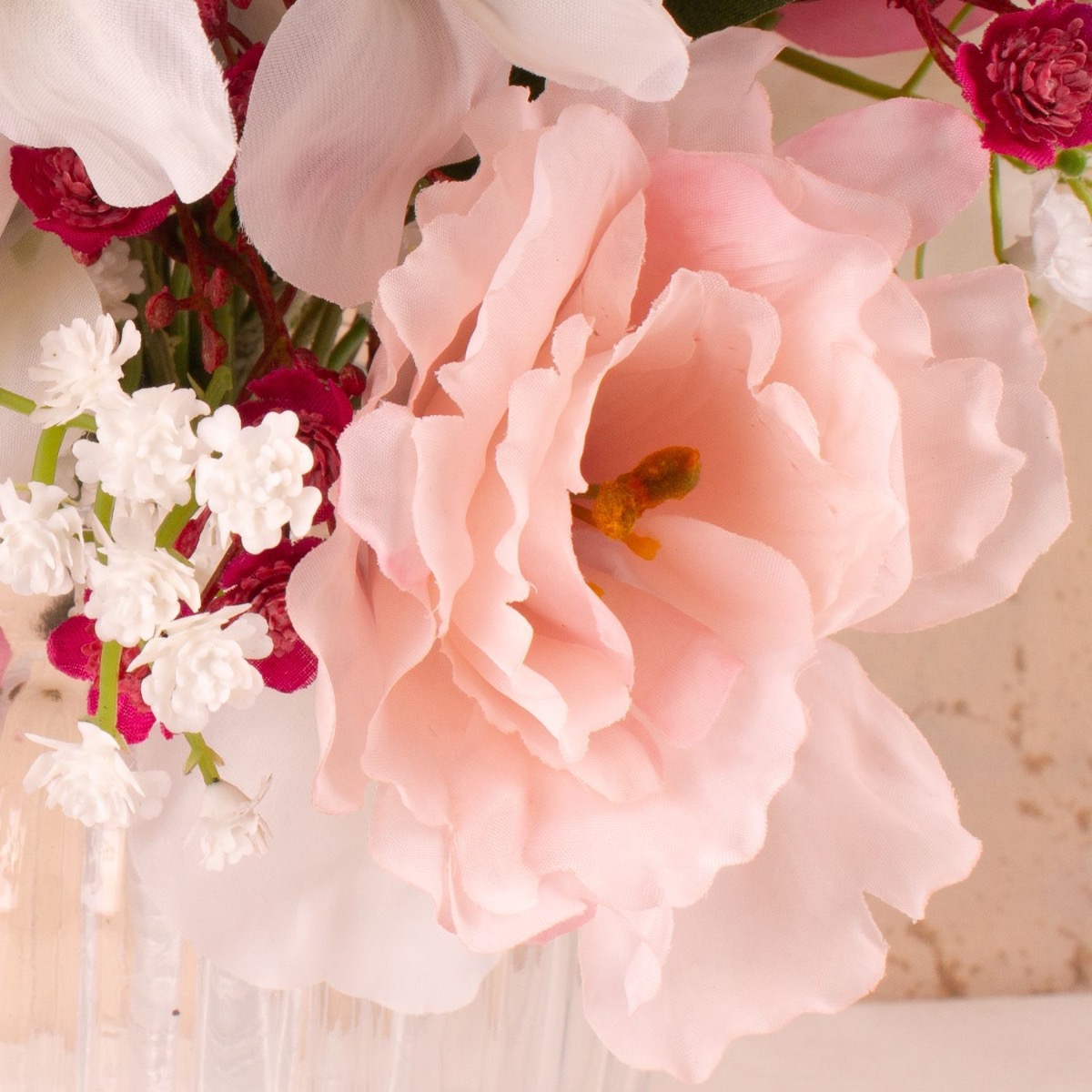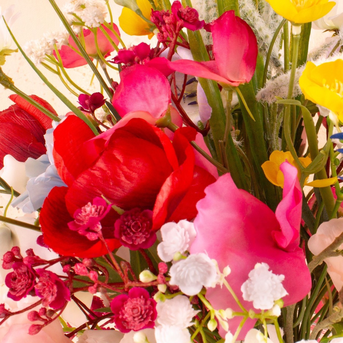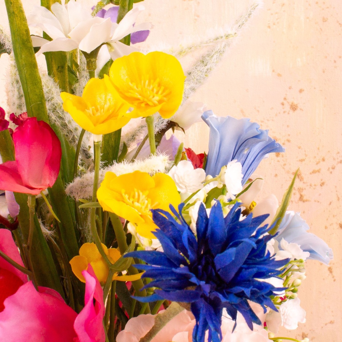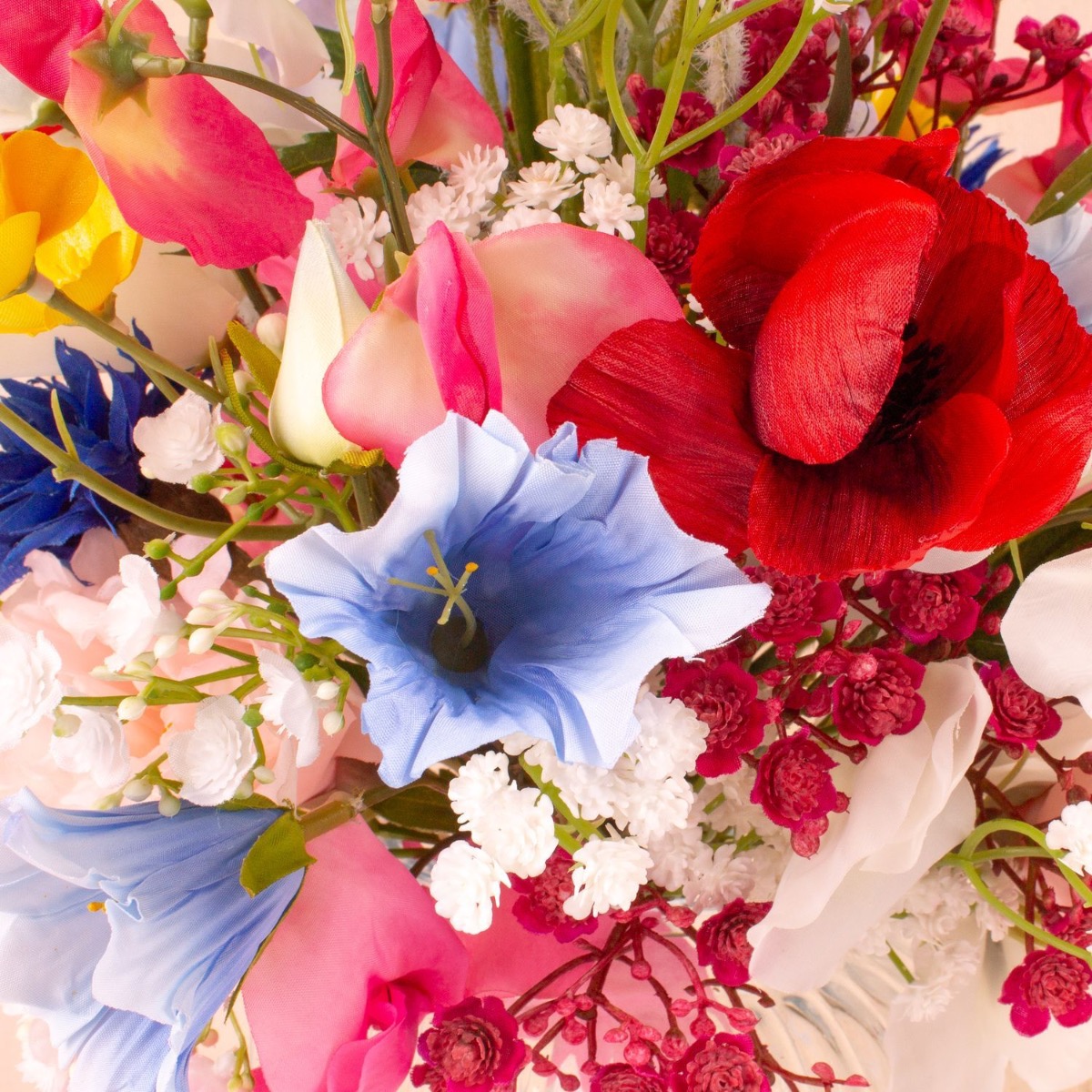 Romantico e colorato! Un bouquet da sposa è qualcosa che vuoi conservare per sempre. Allora perché non regalare un mazzo di fiori artificiali? Heidi è stata molto intelligente e ha lasciato che il nostro team creativo le creasse qualcosa. All'inizio non sapeva esattamente quale dovesse essere il bouquet, ovviamente voleva abbinare il suo vestito azzurro con un bouquet estivo. I nostri clienti sono entusiasti del nostro bestseller Cindana. Spesso lo usano come base per le loro idee. Solo che i cardi utilizzati in questo bouquet non si adattavano molto, quindi li abbiamo sostituiti con il lathyrus rosa. Abbiamo anche messo la gypsophila in rosa e bianco in modo che il bouquet si adatti all'occasione. Speriamo che Heidi abbia trascorso un meraviglioso giorno del matrimonio! Acquista il look!