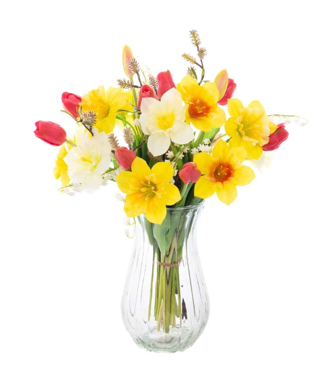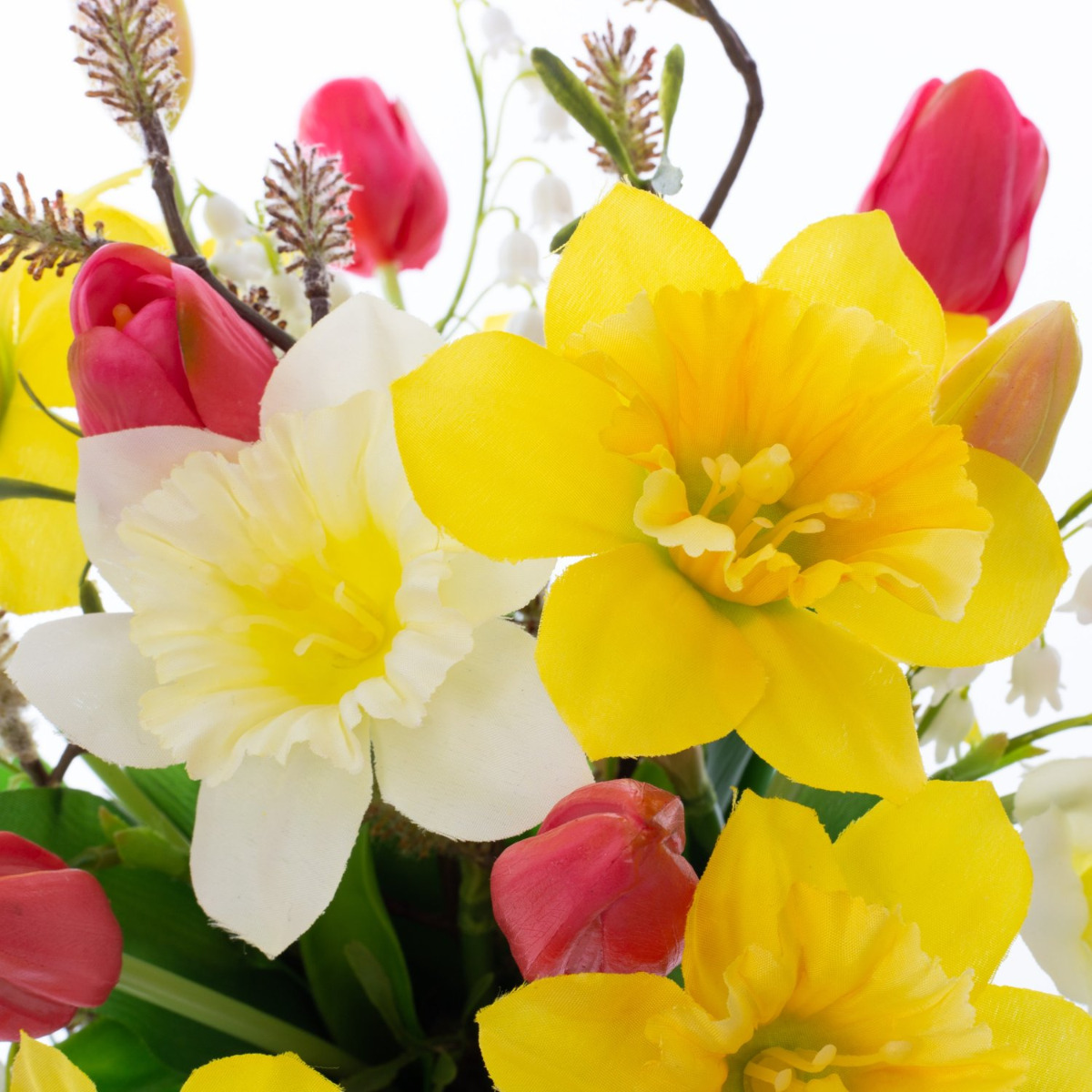 Bouquet decorativo di primavera MANULA, narciso, giallo-rosa-bianco, 40cm, Ø30cm