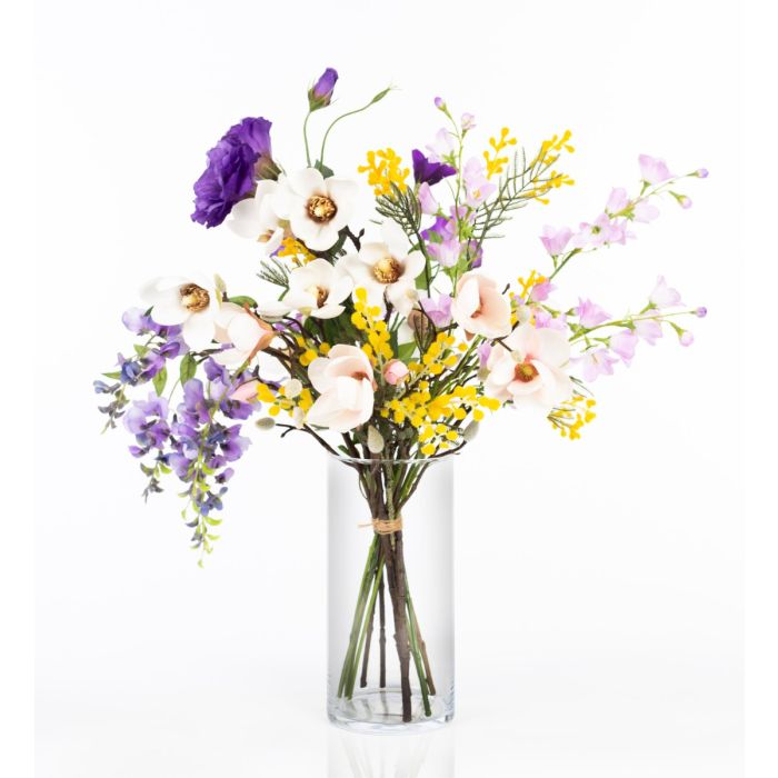 Bouquet di fiori decorativo primaverili CALISSA, giallo-viola, 60cm, Ø40cm