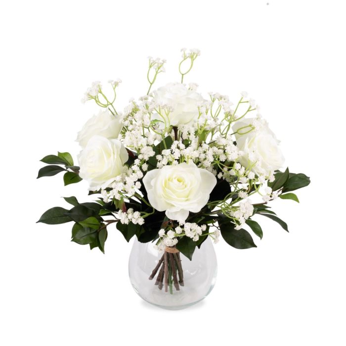 Bouquet di rose artificiali ELLI, gipsofila, rosa crema, 35cm, Ø30cm