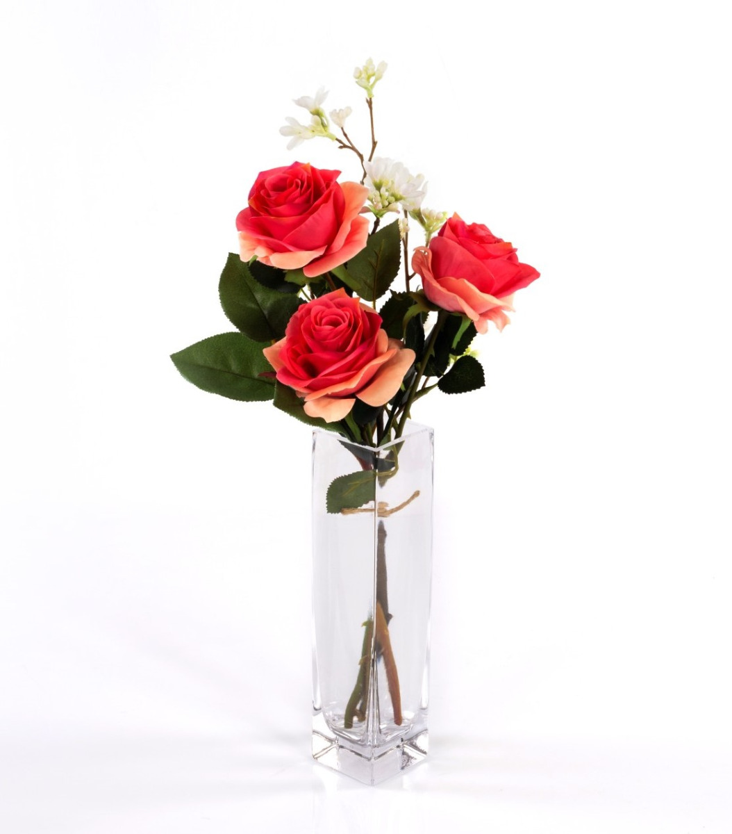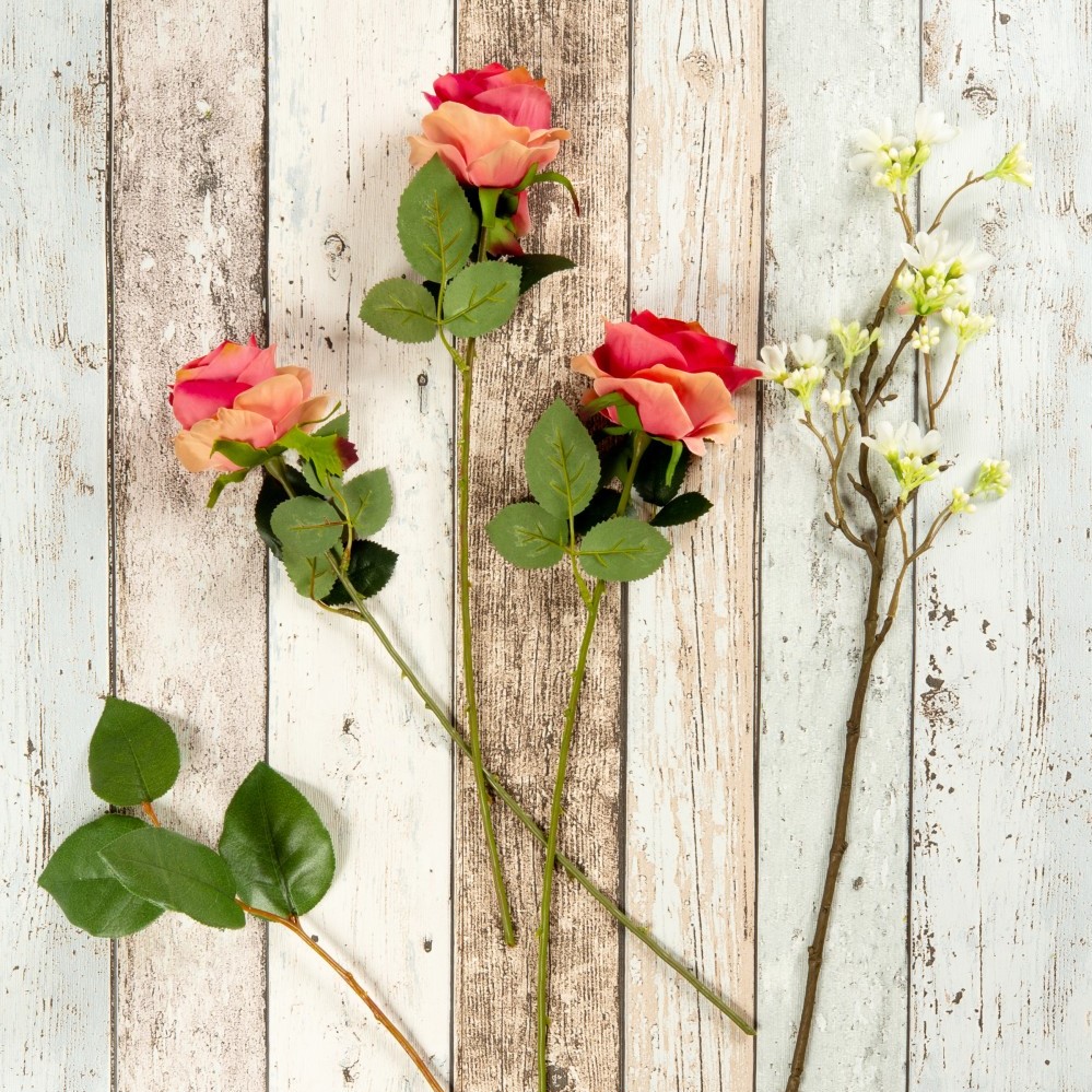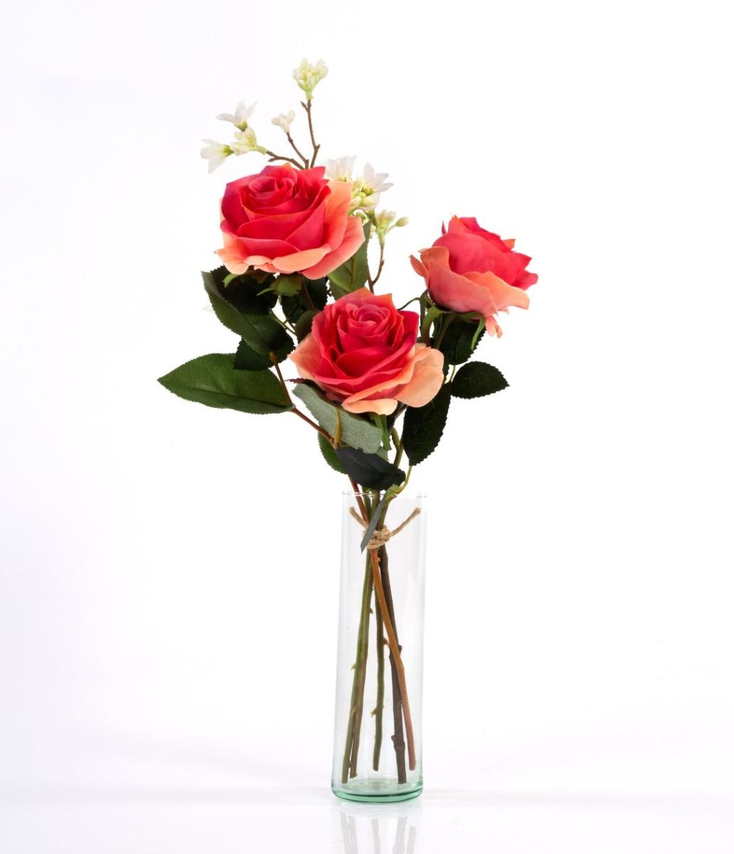 Bouquet di rose artificiali SIMONY con accessori, salmone, 45cm, Ø20cm