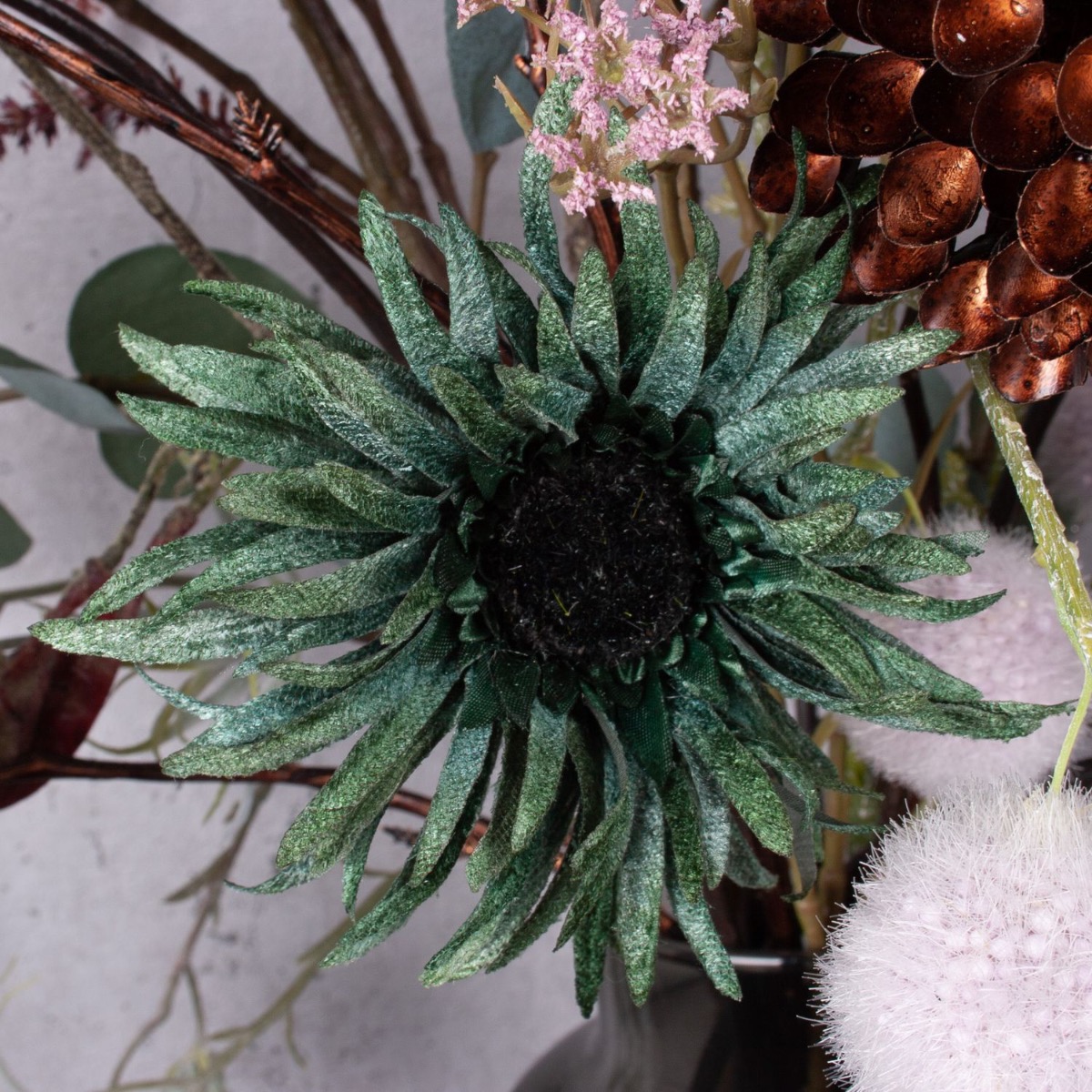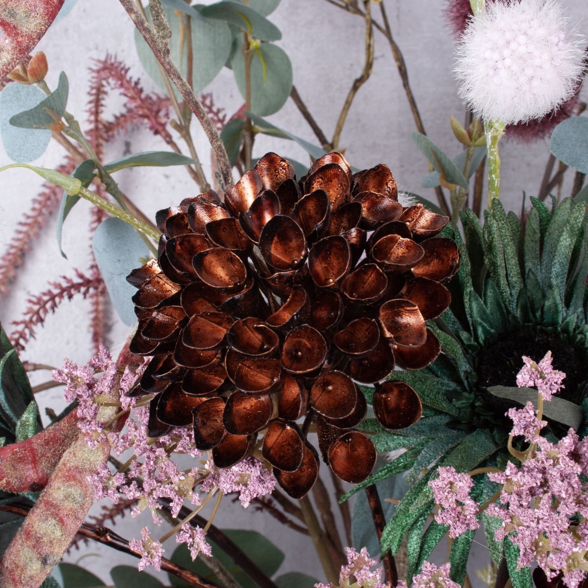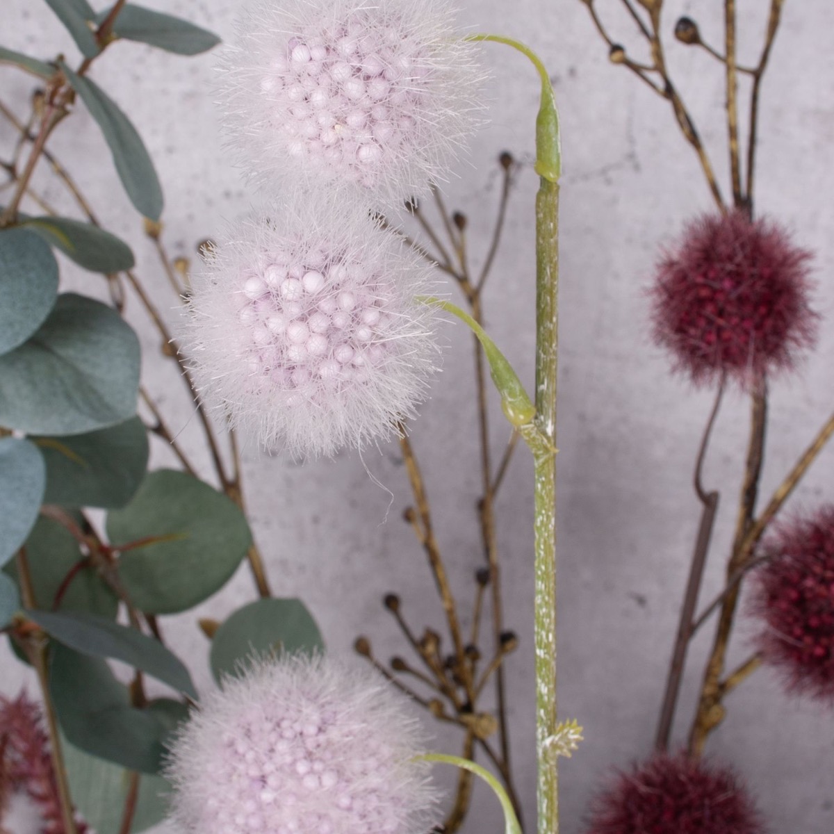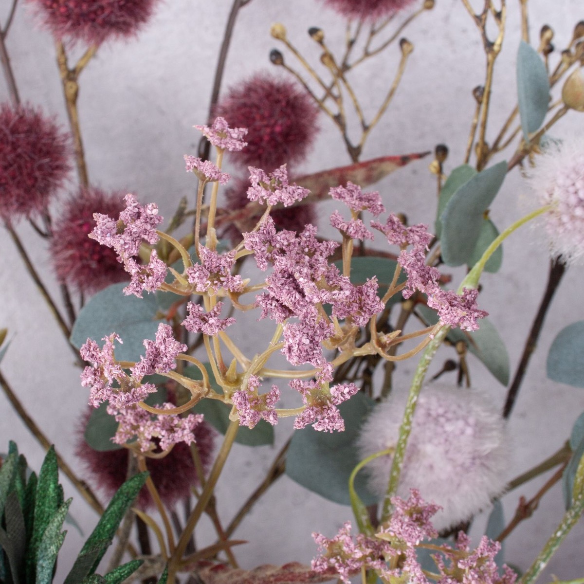Magnifico e incantevole! La nostra cliente cercava un magnifico bouquet per il suo appartamento in un vecchio edificio con un soffitto alto che occupasse tutto lo spazio di una cassettiera. Le è piaciuto subito il nostro LOOK-057 Eleganza ala Arte Nuveau. Lo abbiamo preso come modello e lo abbiamo reso più esuberante. Abbiamo utilizzato rami viola chiaro per aggiungere il calore desiderato al bouquet. Un semplice vaso nero e trasparente completa perfettamente questo bouquet. Volete anche un bouquet artificiale stravagante? Acquistate il look!