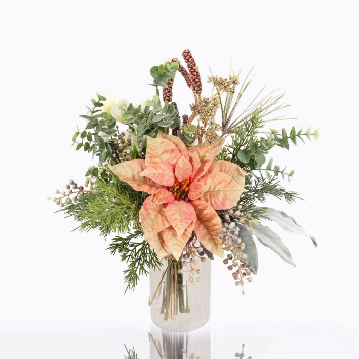 Bouquet invernale decorativo NOANA, stella di natale, rosa-bianco, 40cm, Ø40cm