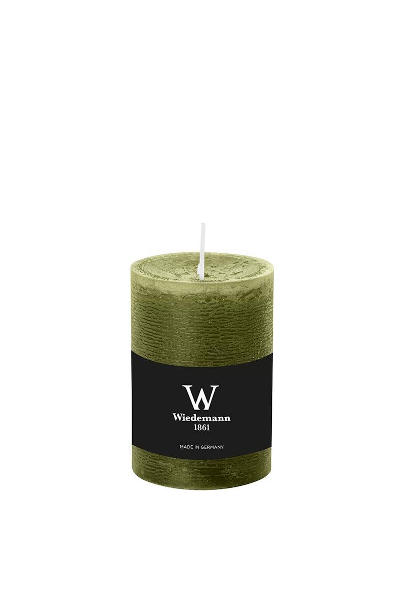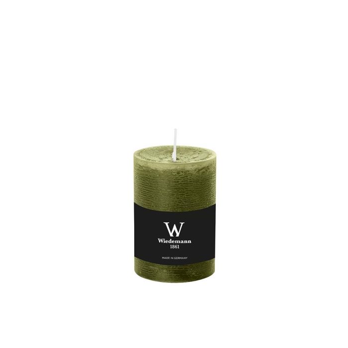 Candela a colonna / Candela di cera AURORA, verde oliva, 10cm, Ø6,8cm, 42h - Made in Germany