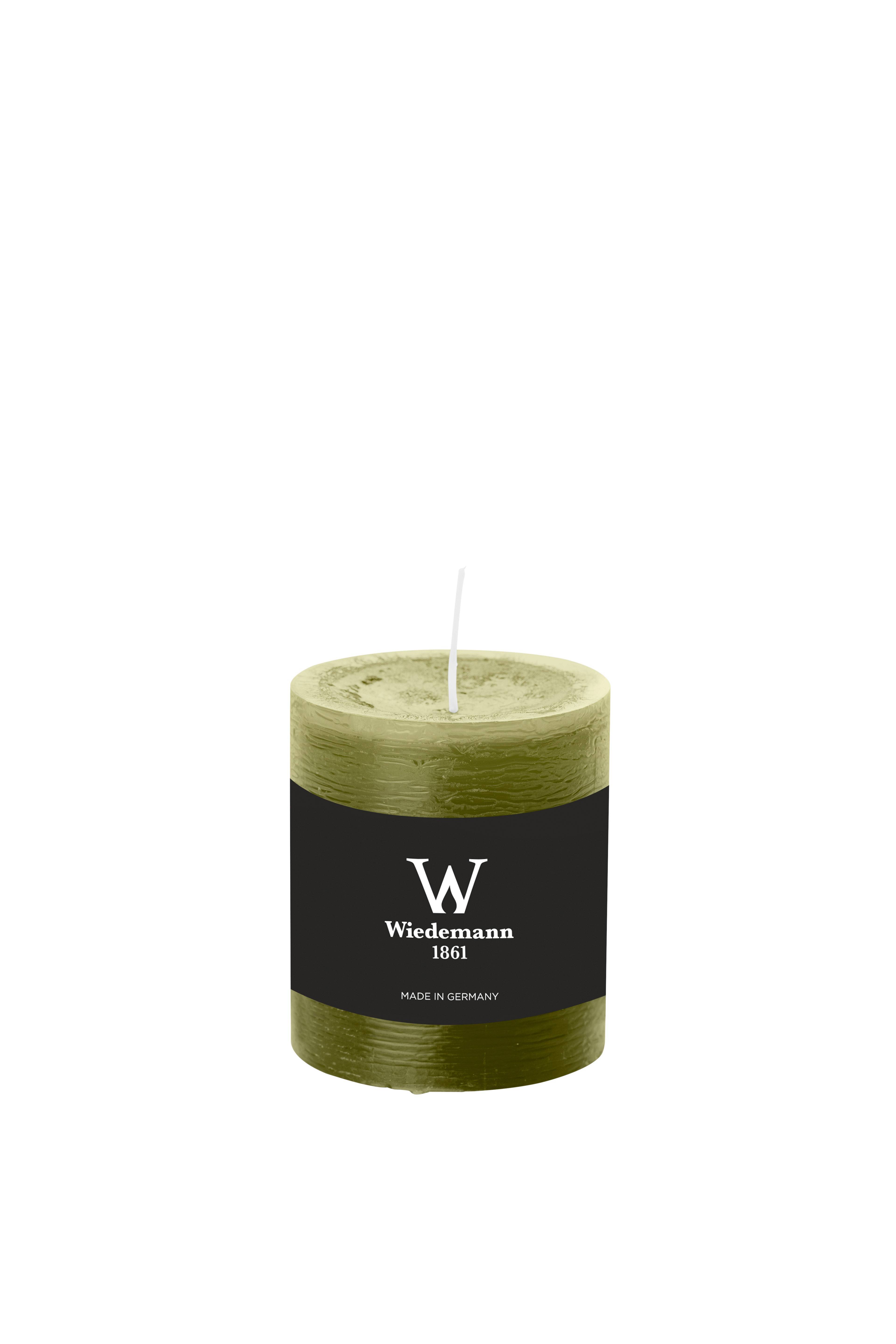 Candela a colonna / Candela di cera AURORA, verde oliva, 8cm, Ø6,8cm, 34h - Made in Germany