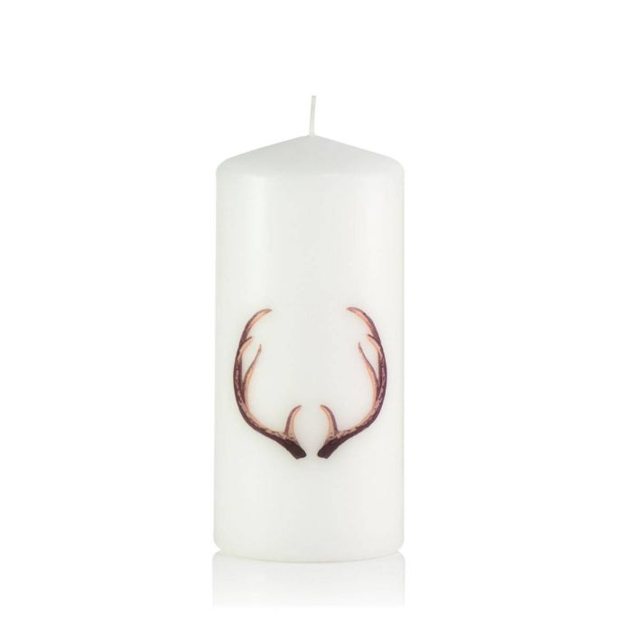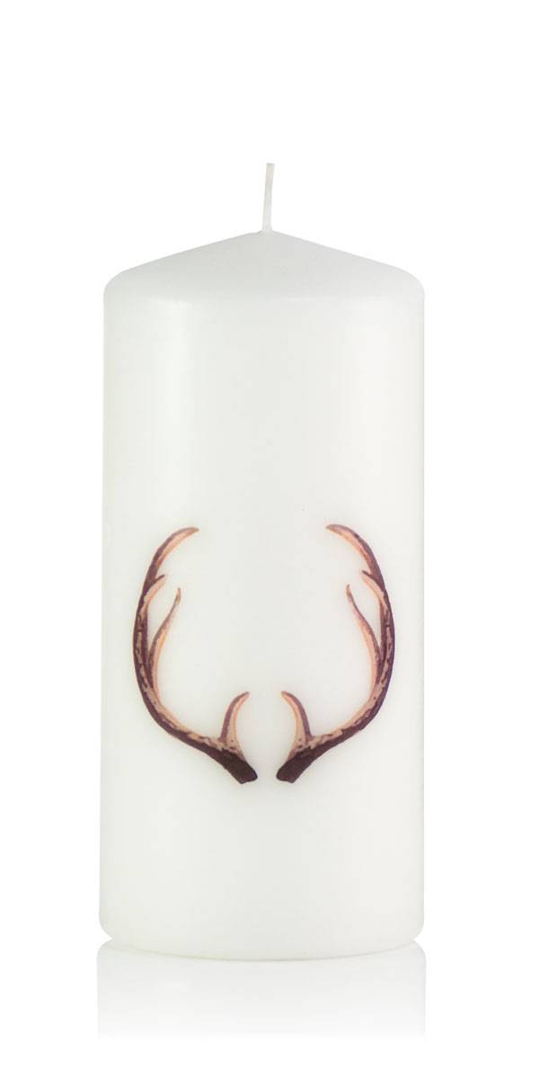Candela moderna / Candela con disegno WALDI, corna di cervo-figurina adesiva, bianco, 15cm, Ø7cm, 52h - Made in Germany