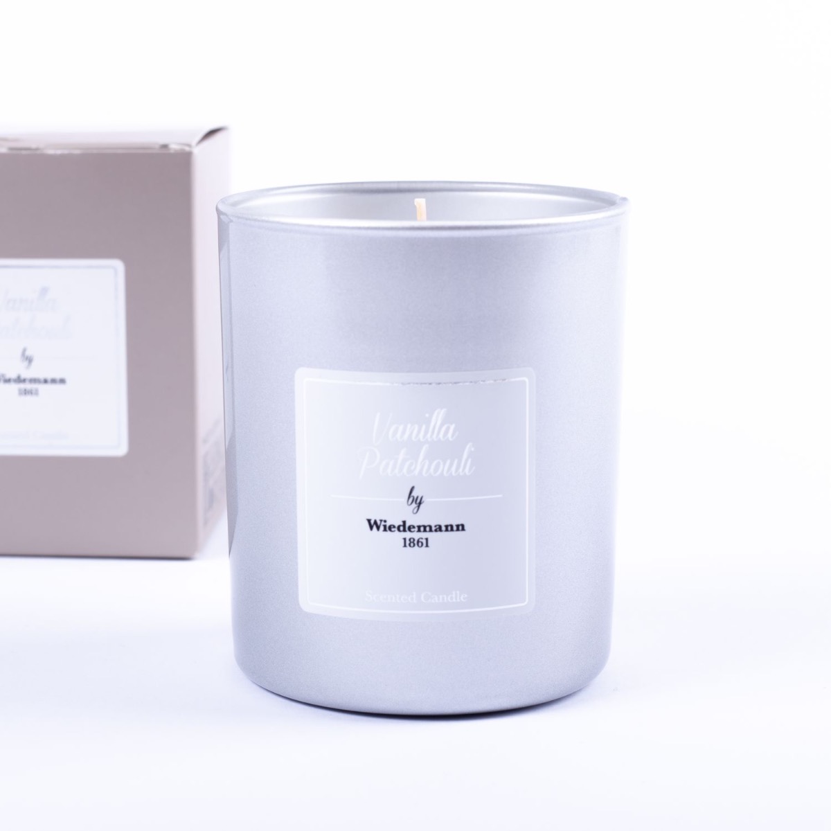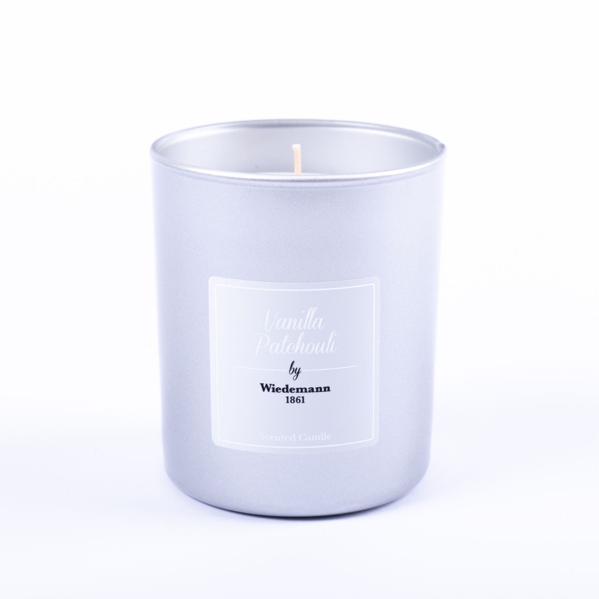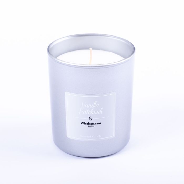Candela profumata MIREYA in vetro, Vanilla Patchouli, argento, 9,3cm, Ø7,9cm, 35h