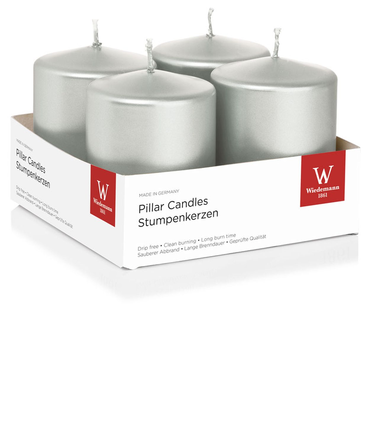 Candele dell'Avvento JENARO, 4 pezzi, argento, 8cm, Ø6cm, 29h - Made in Germany