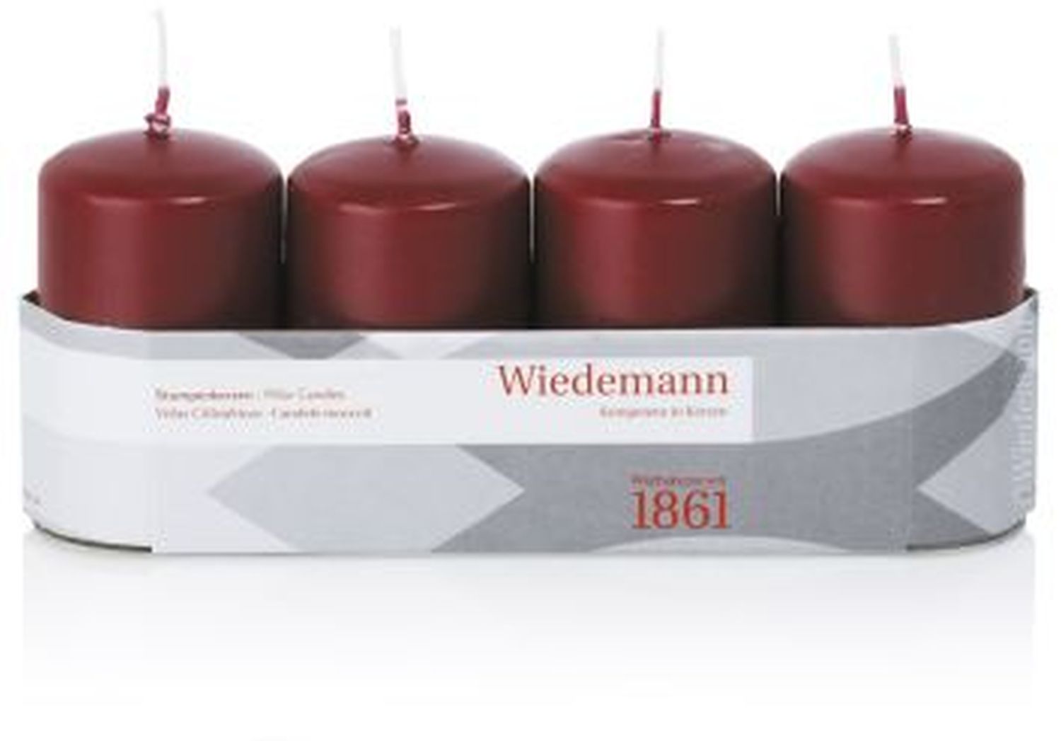 Candele dell'Avvento JENARO, 4 pezzi, bordeaux, 8cm, Ø5cm, 18h - Made in Germany