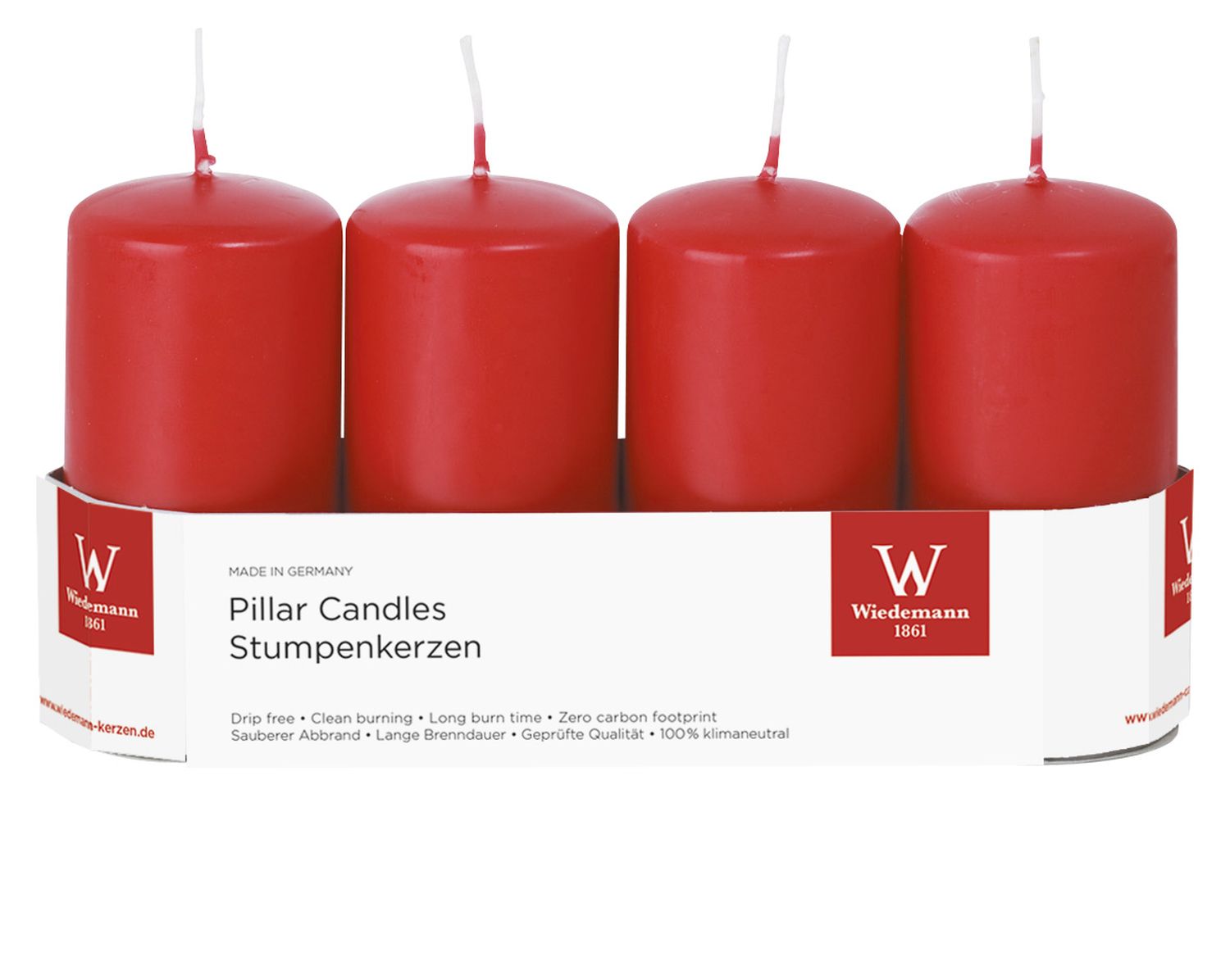 Candele dell'Avvento JENARO, 4 pezzi, rosso, 10cm, Ø5cm, 23h - Made in Germany