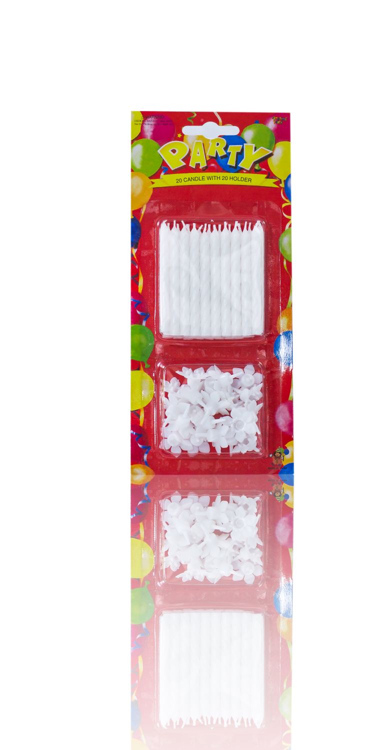 Candele di compleanno LULUNA con 20 candele e 20 supporti, bianco, 6,5cm, Ø0,5cm