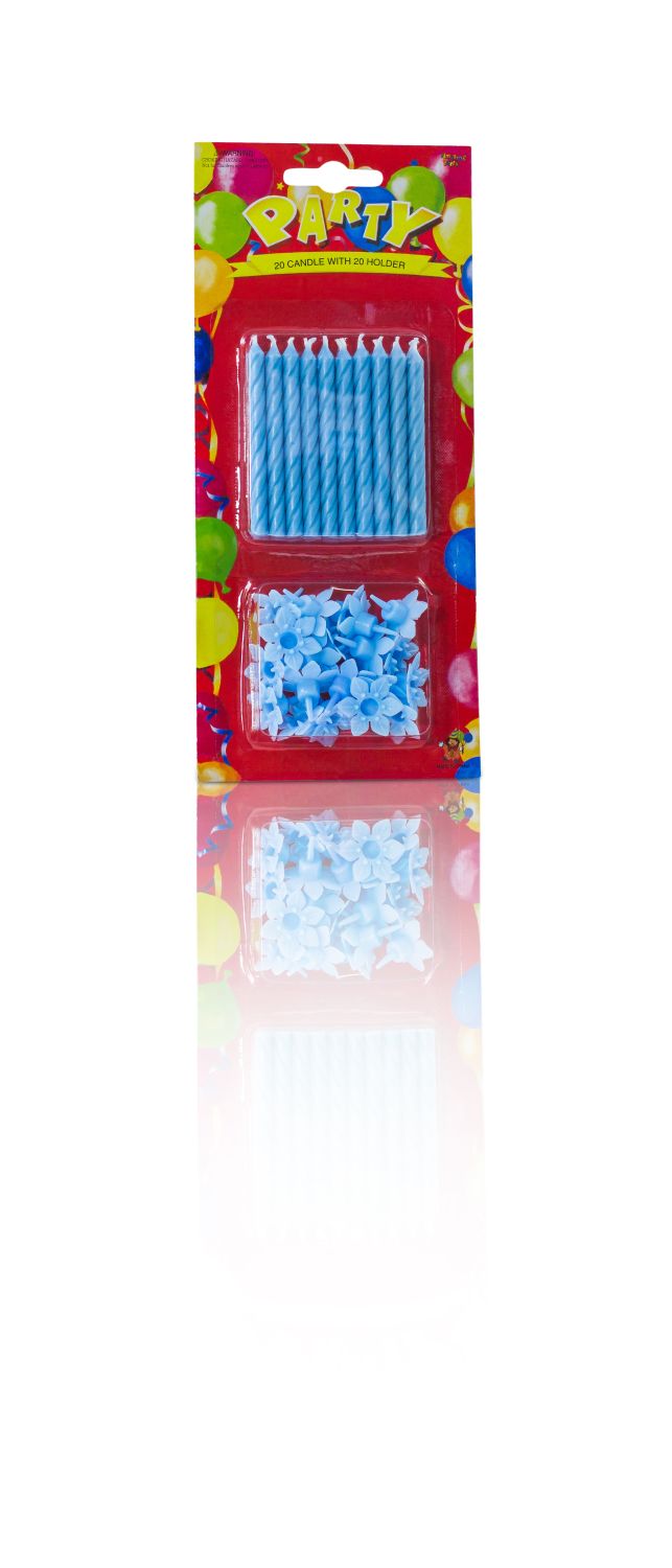 Candele di compleanno LULUNA con 20 candele e 20 supporti, blu, 6,5cm, Ø0,5cm