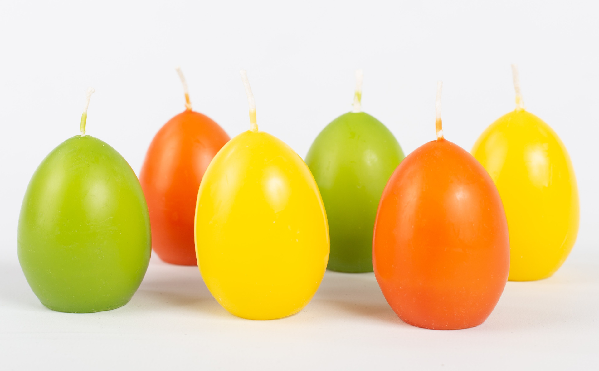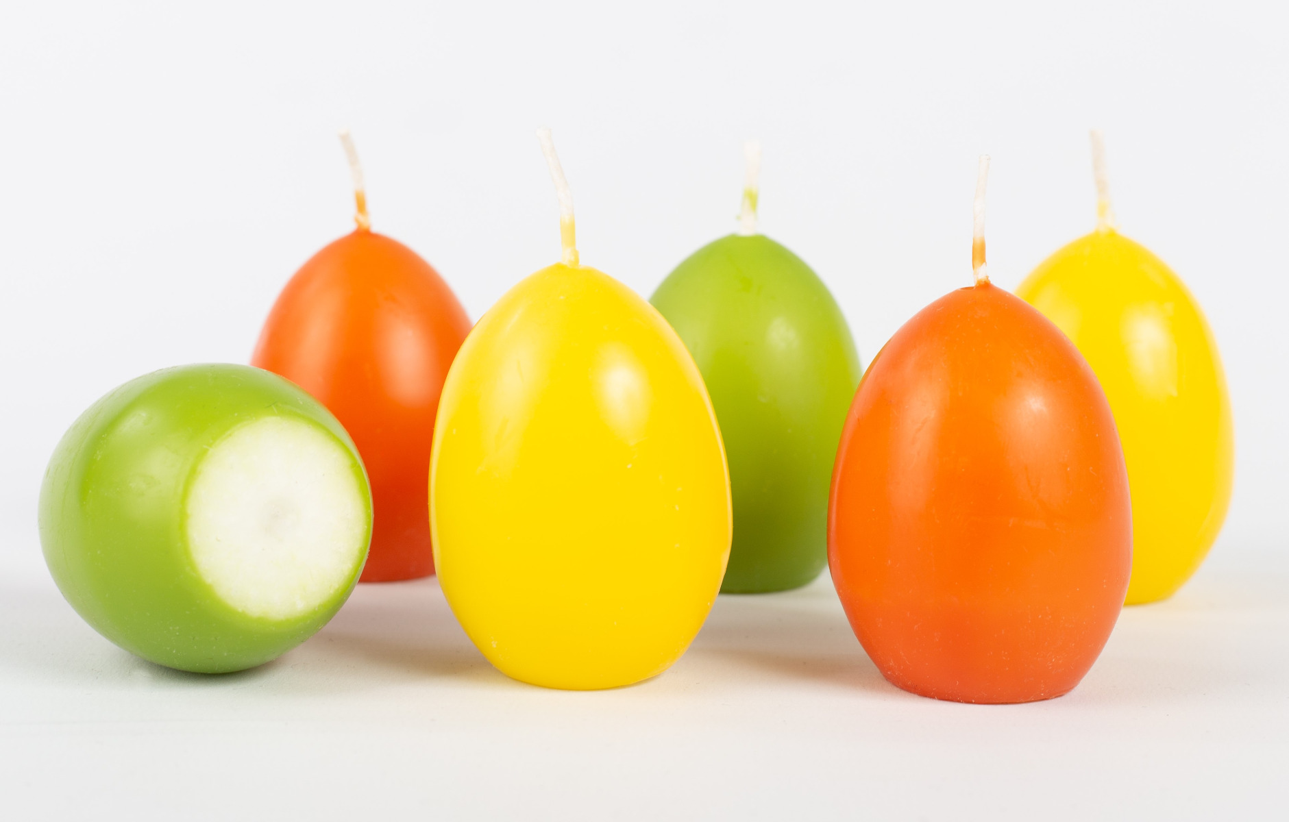 Candele di uova di Pasqua LEONITA, 6 pezzi, giallo-arancione-verde, 6cm, 4,5cm, 7h - Made in Germany