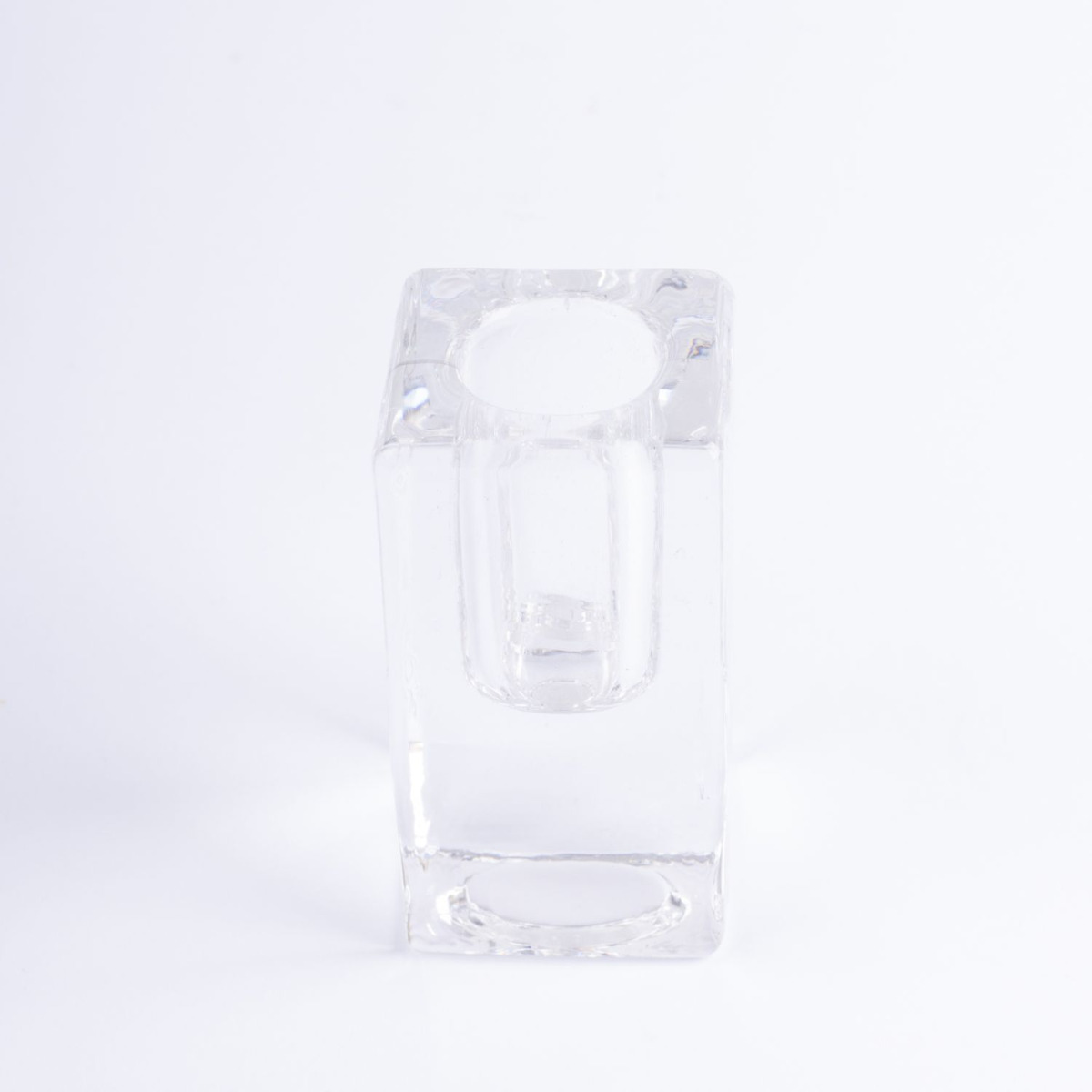 Candeliere quadrato in vetro SOLUNA per candele affusolate, trasparente, 4x4x9,8cm