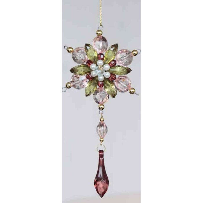 Ciondolo acrilico di fiore GARAH, goccia, verde-oro, 16cm, Ø8cm