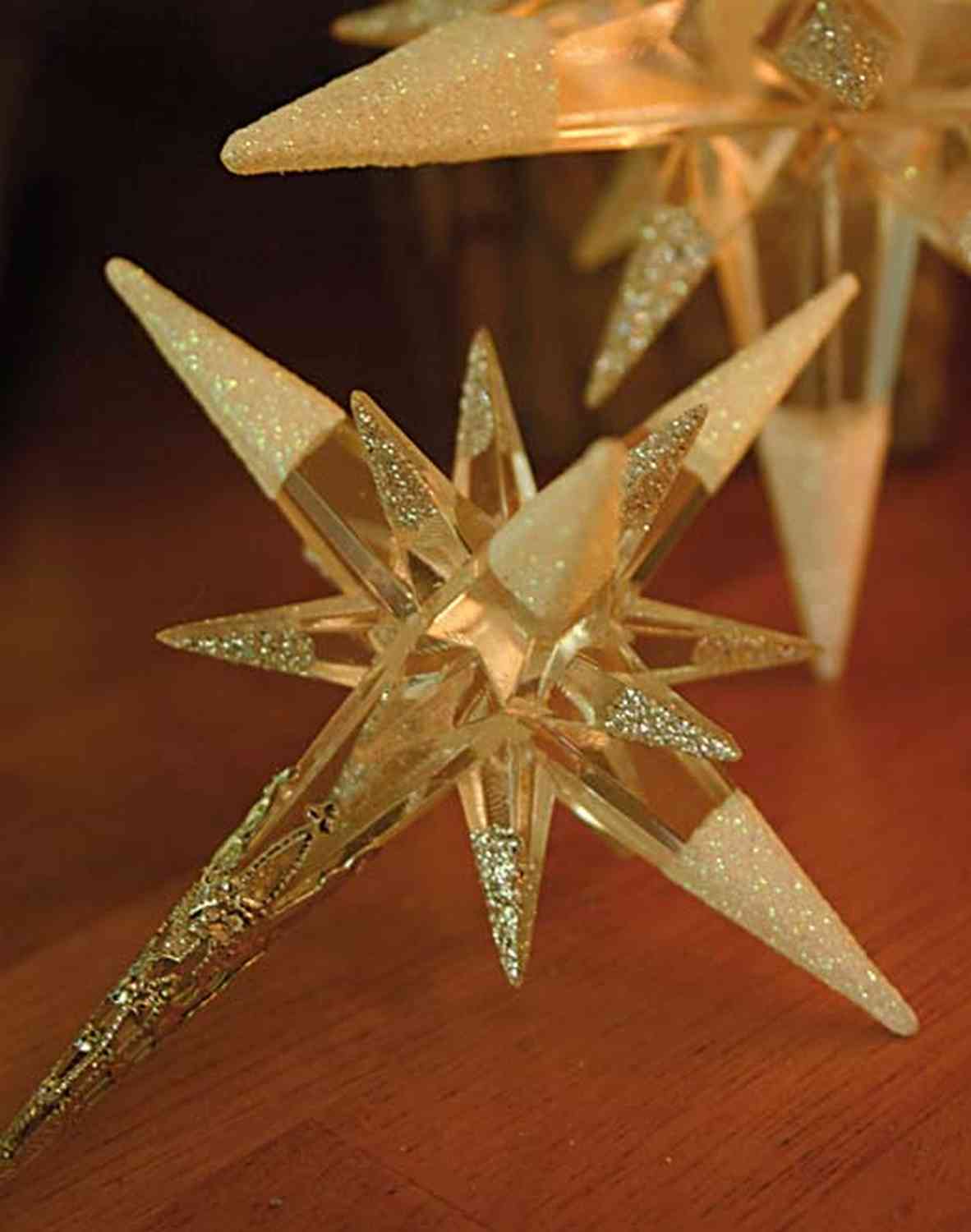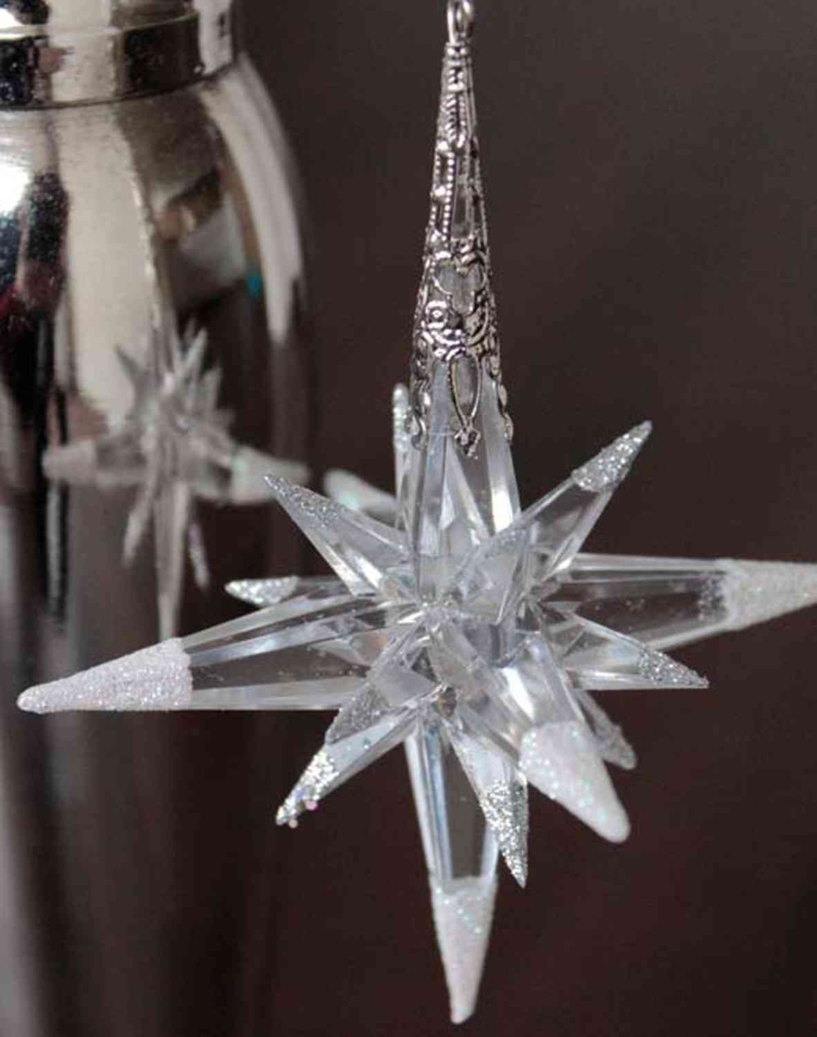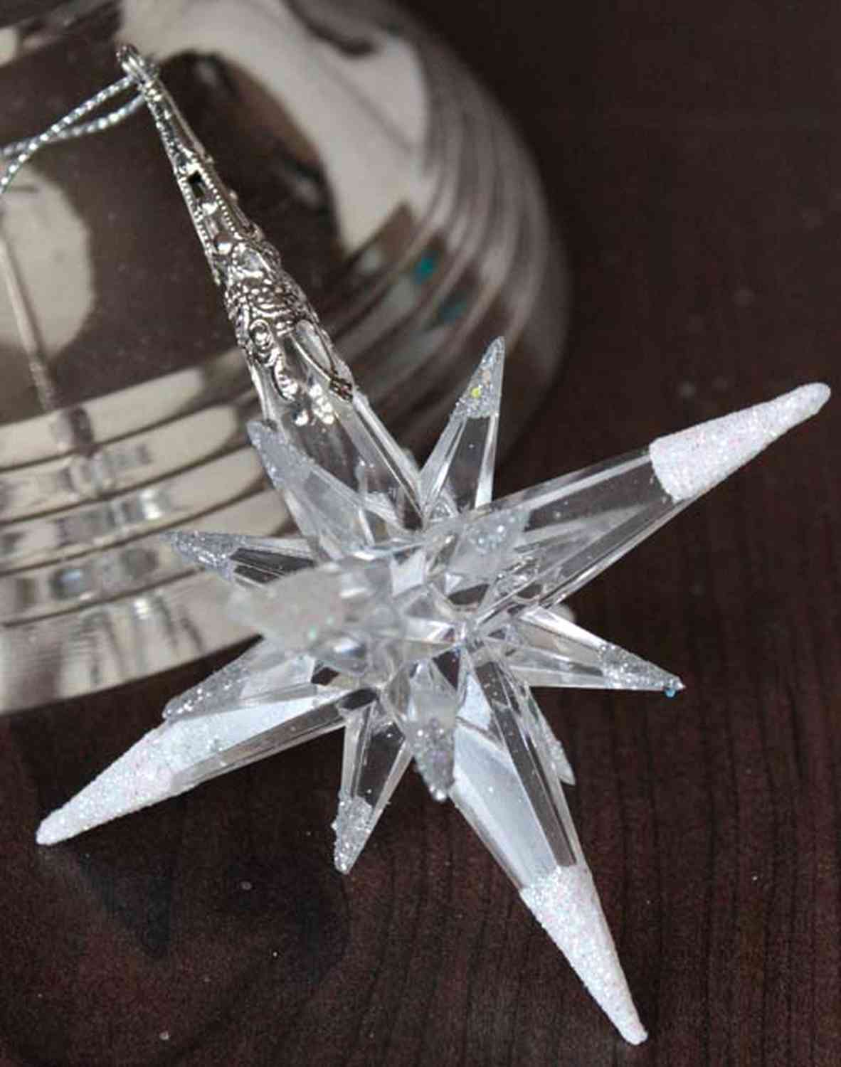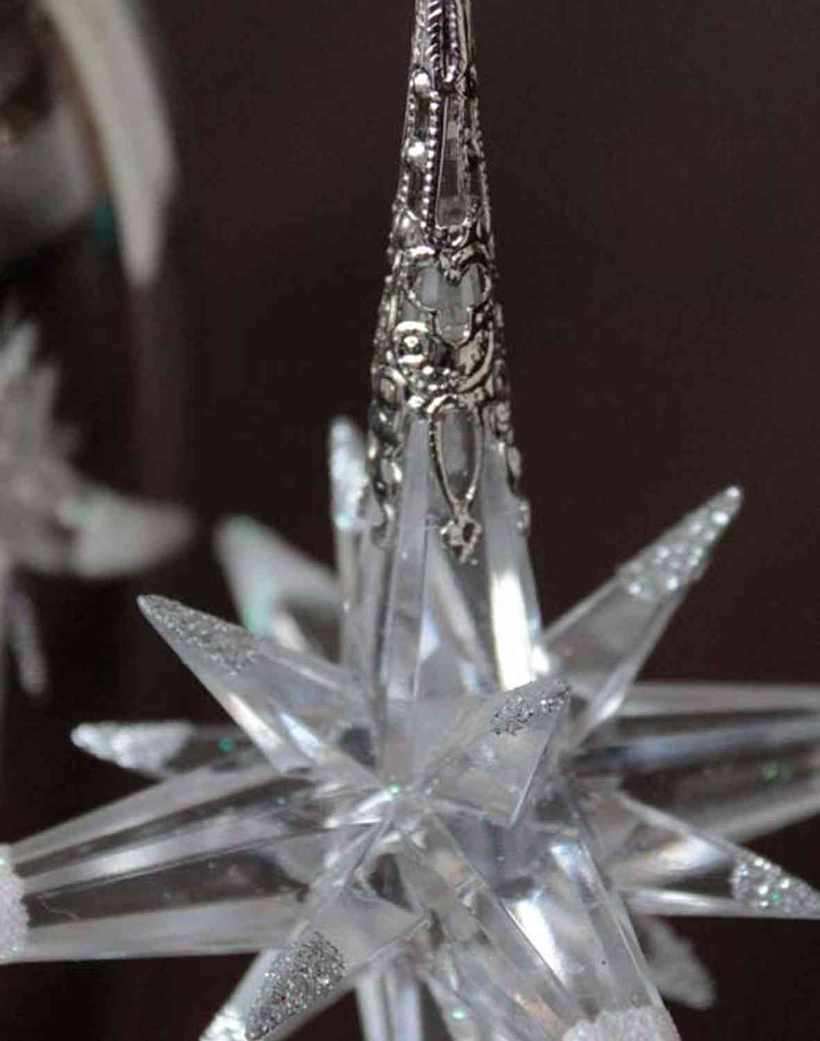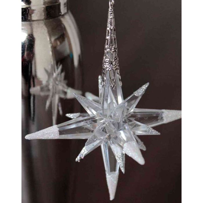 Ciondolo acrilico di stella MABOU, glitter, bianco-argento, 10cm, Ø10cm