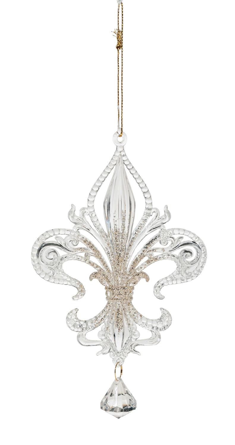 Ciondolo decorativo di giglio araldico AZARIEL acrilico, glitter, trasparente-oro, 15cm