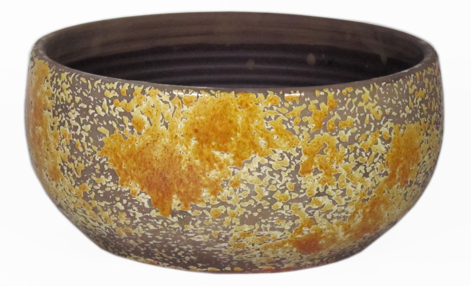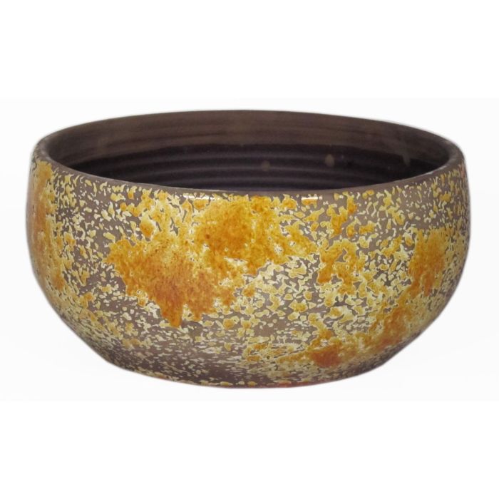 Ciotola rustica in ceramica TSCHIL, sfumatura di colore, giallo ocra-marrone, 13cm, Ø28cm
