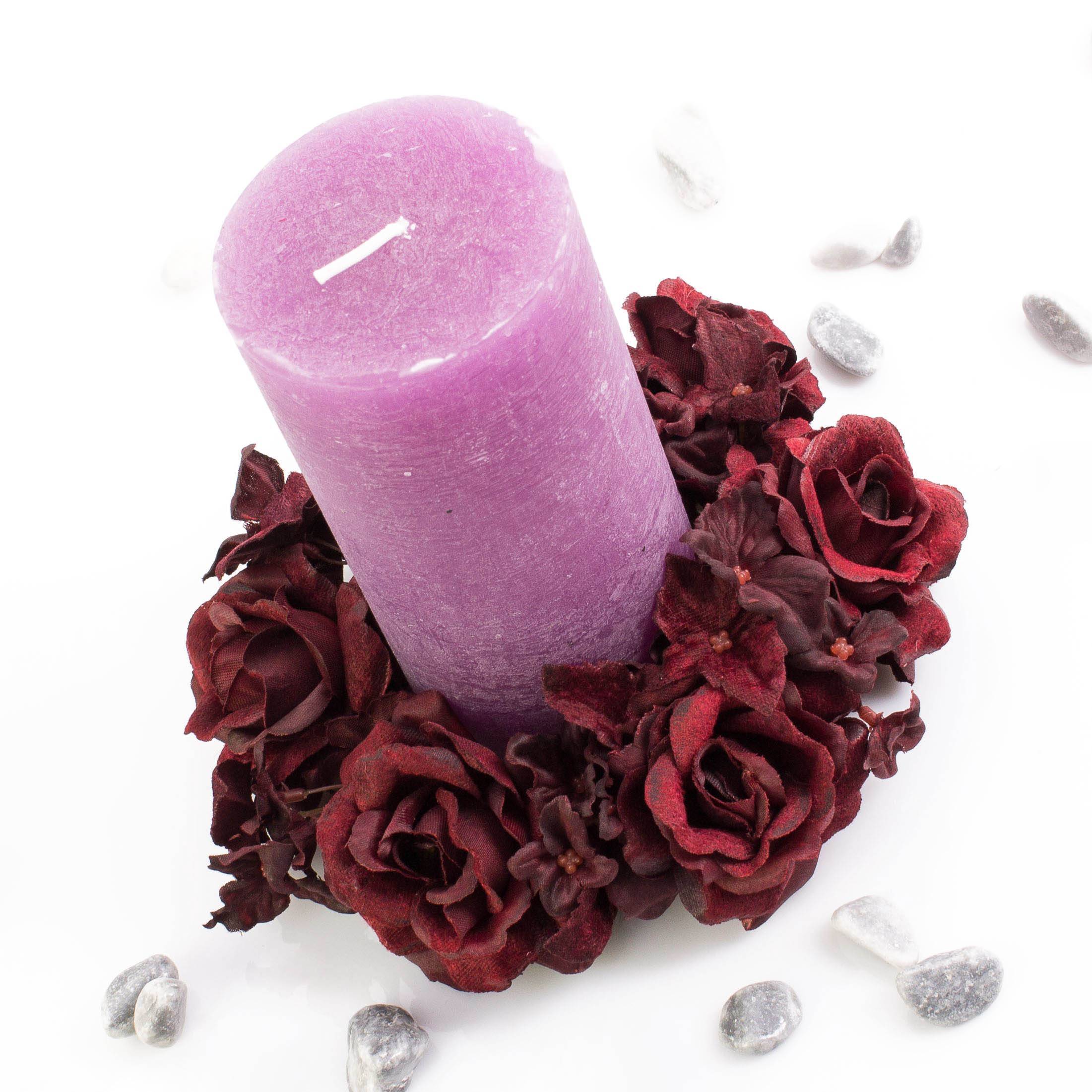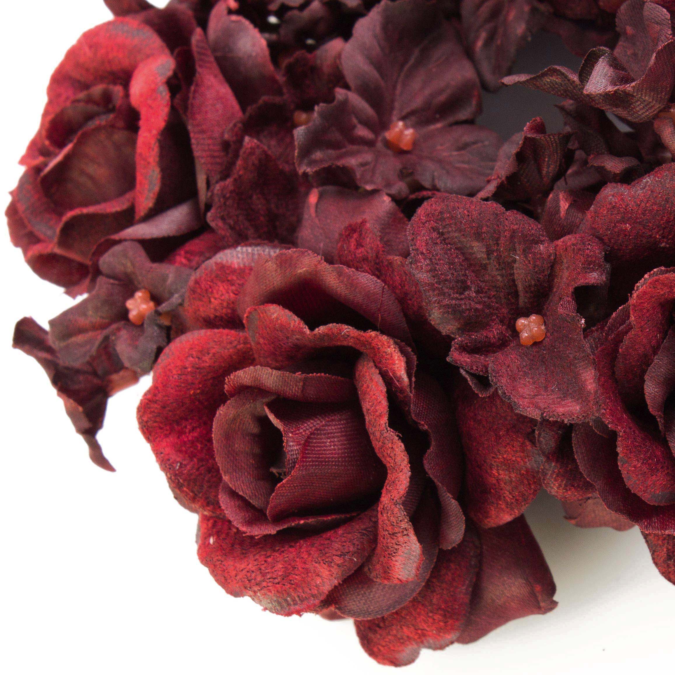 Corona finta di candele INGA, rosa, ortensia, rosso scuro, Ø15cm