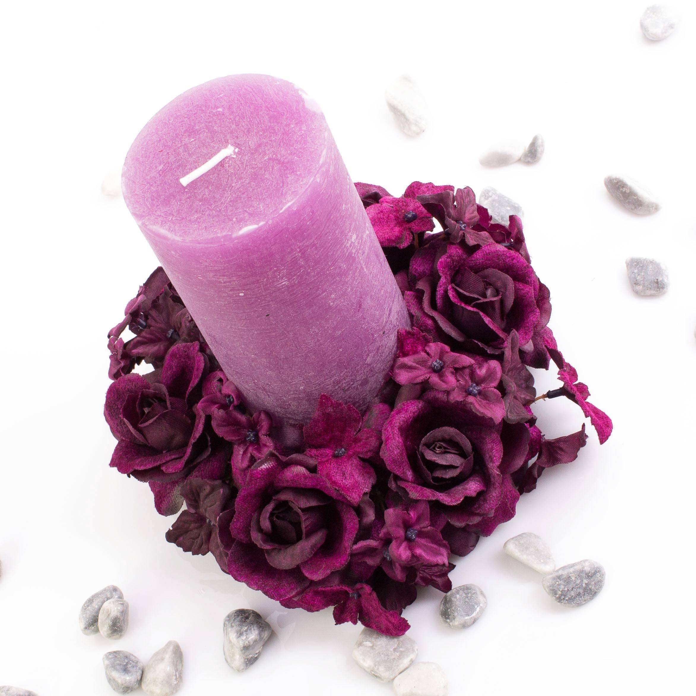 Corona finta di candele INGA, rosa, ortensia, viola, Ø15cm