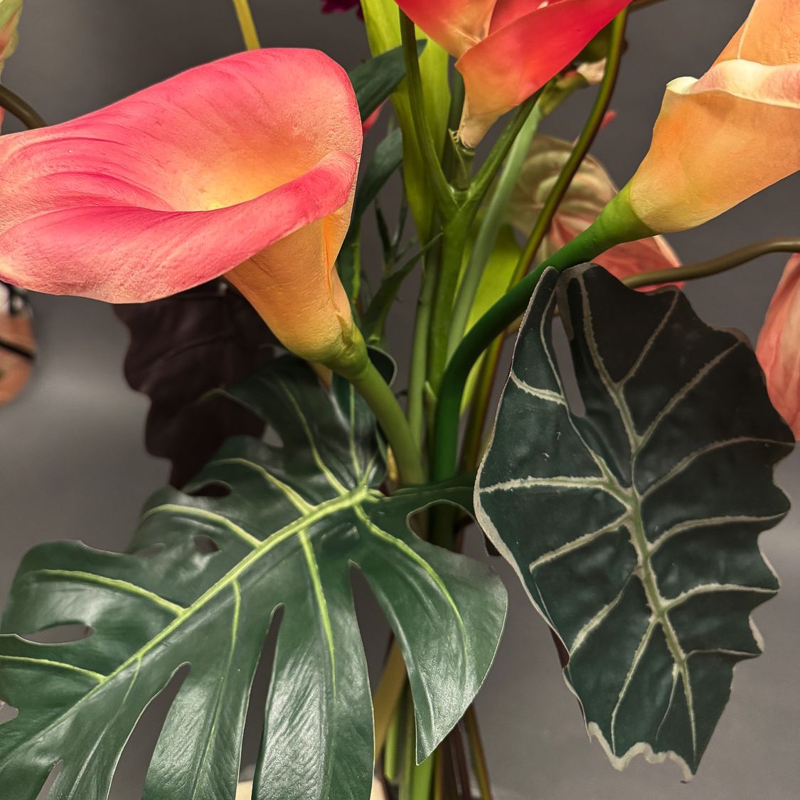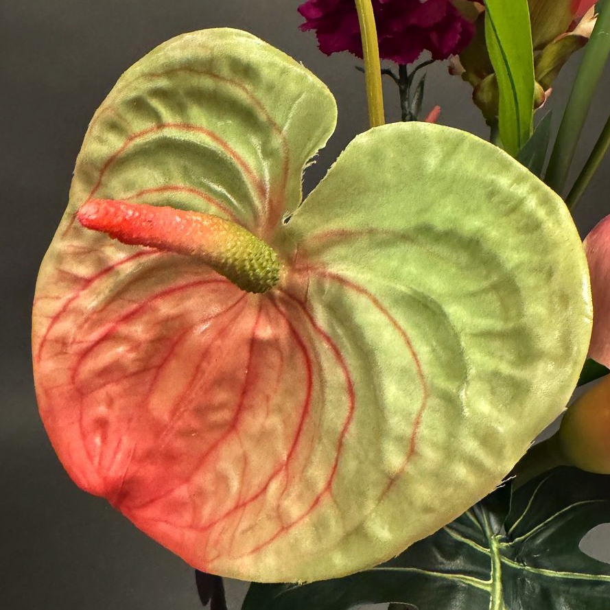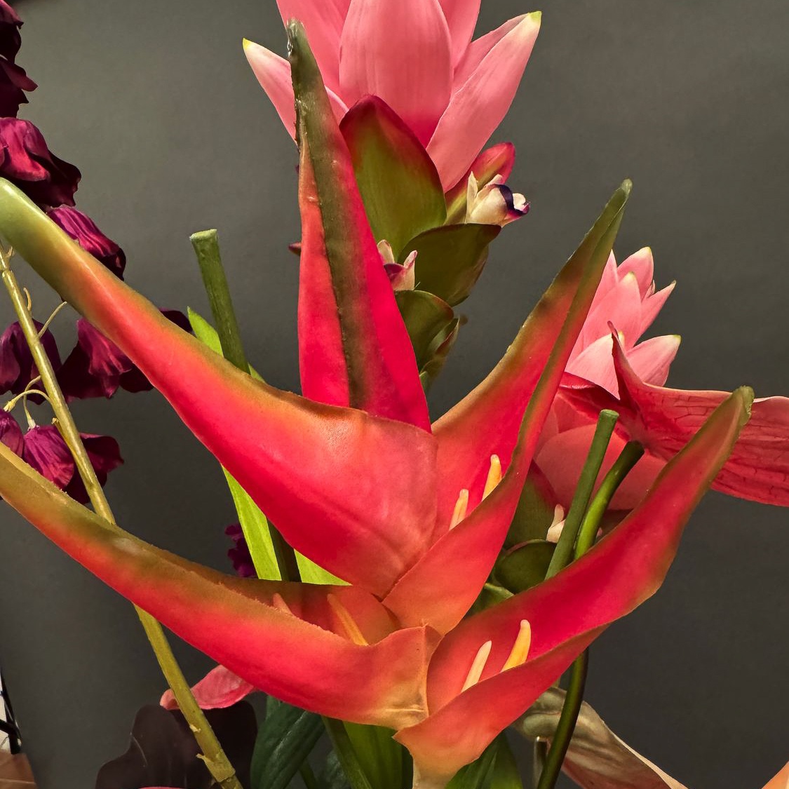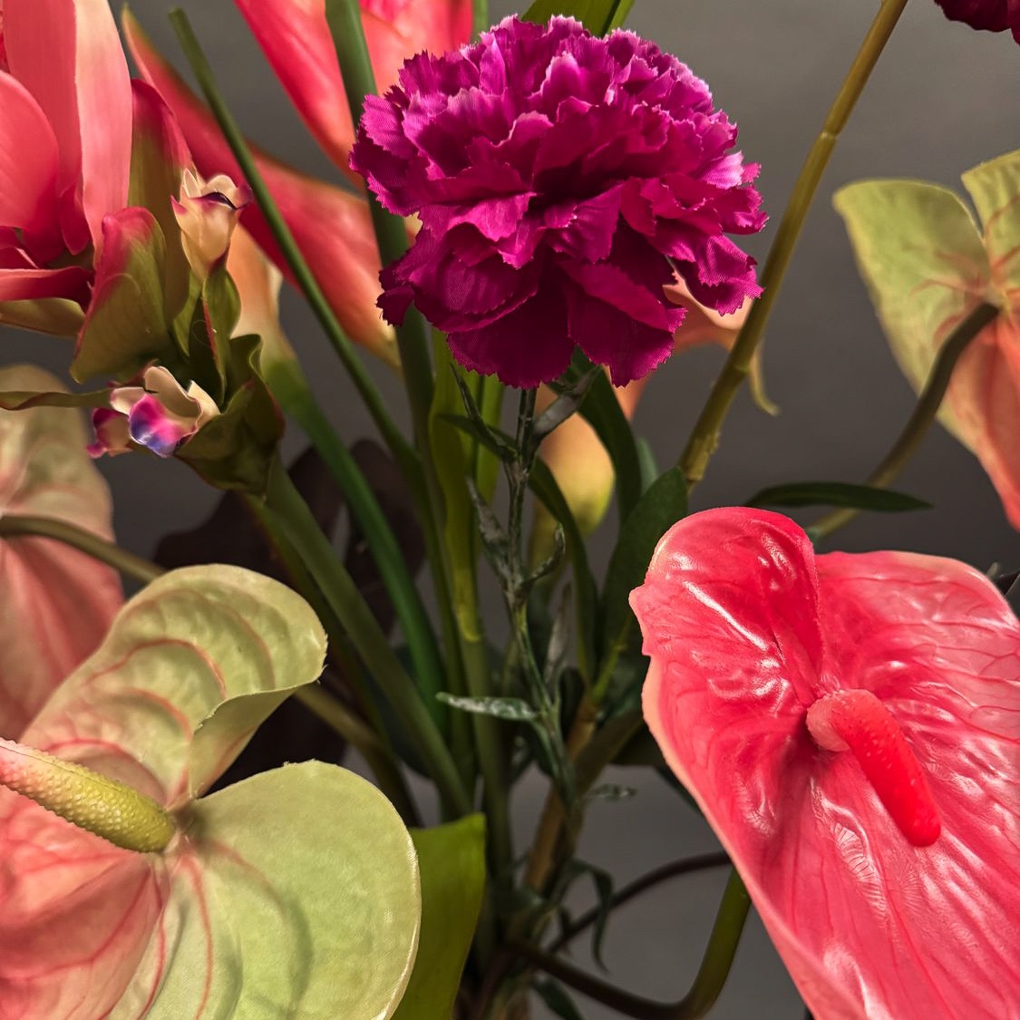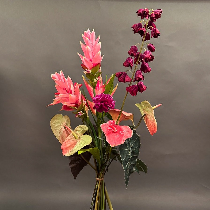Uno spettacolo di fiori! Questo bouquet tropicale ha catturato l'attenzione di Josef durante un appuntamento. Ci ha chiesto di ricreare questa composizione estiva, che ricorda soprattutto i giardini tropicali o i paesi lontani. Il bouquet è davvero accattivante e crea una vera atmosfera vacanziera. Spiccano fiori esotici come anthurium ed heliconia, che sottolineano il design asimmetrico dell'insieme. Perfetto come elemento decorativo in ambienti moderni o come regalo per chi ama l'insolito. Acquista il look!