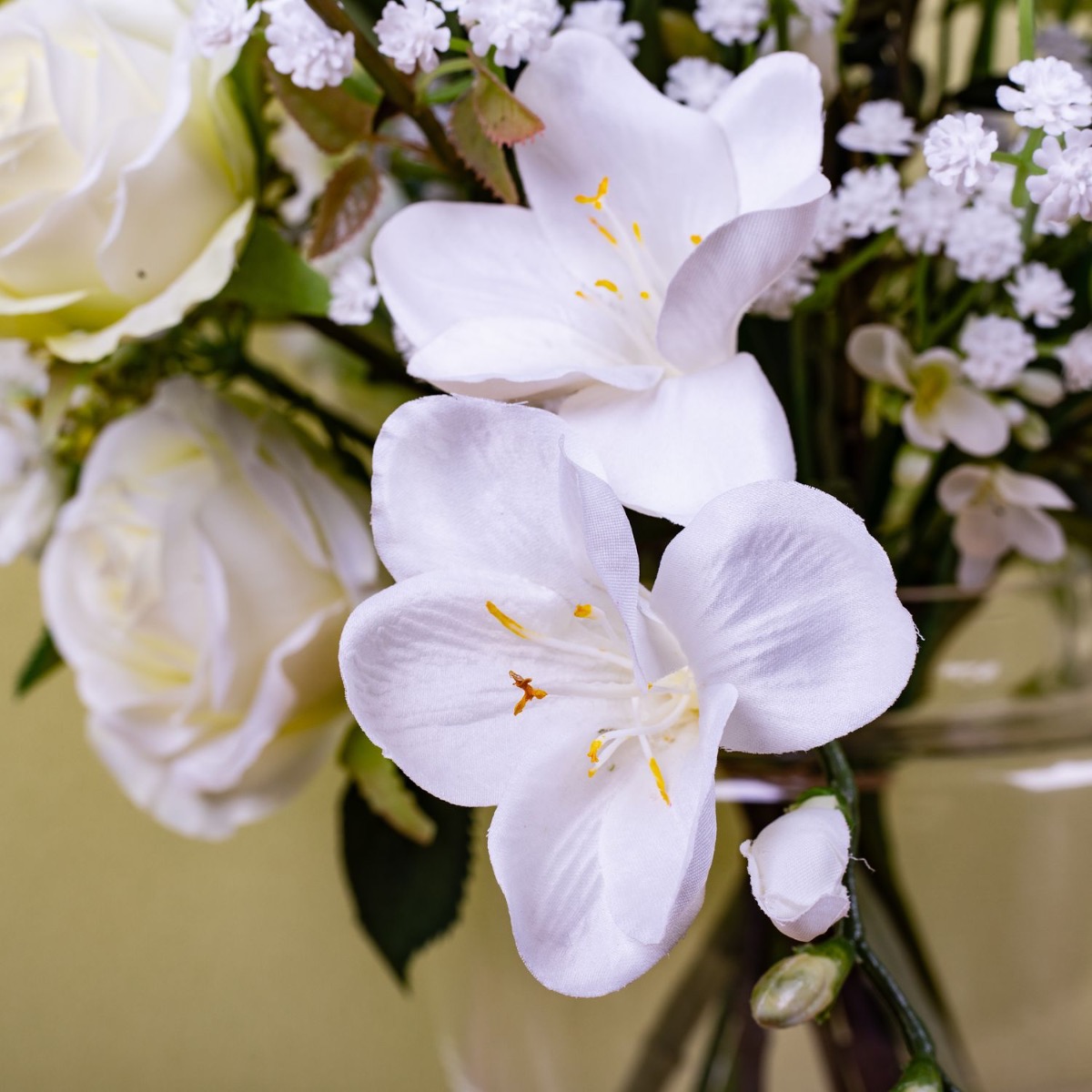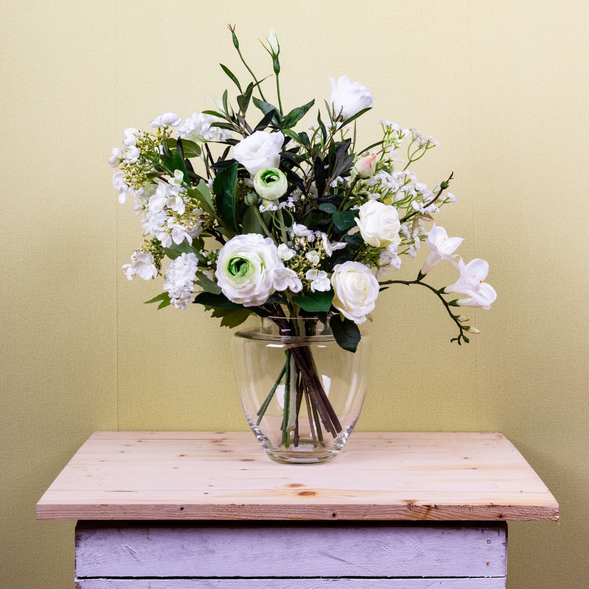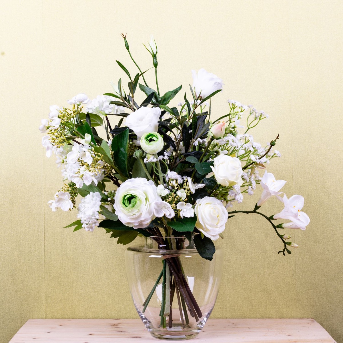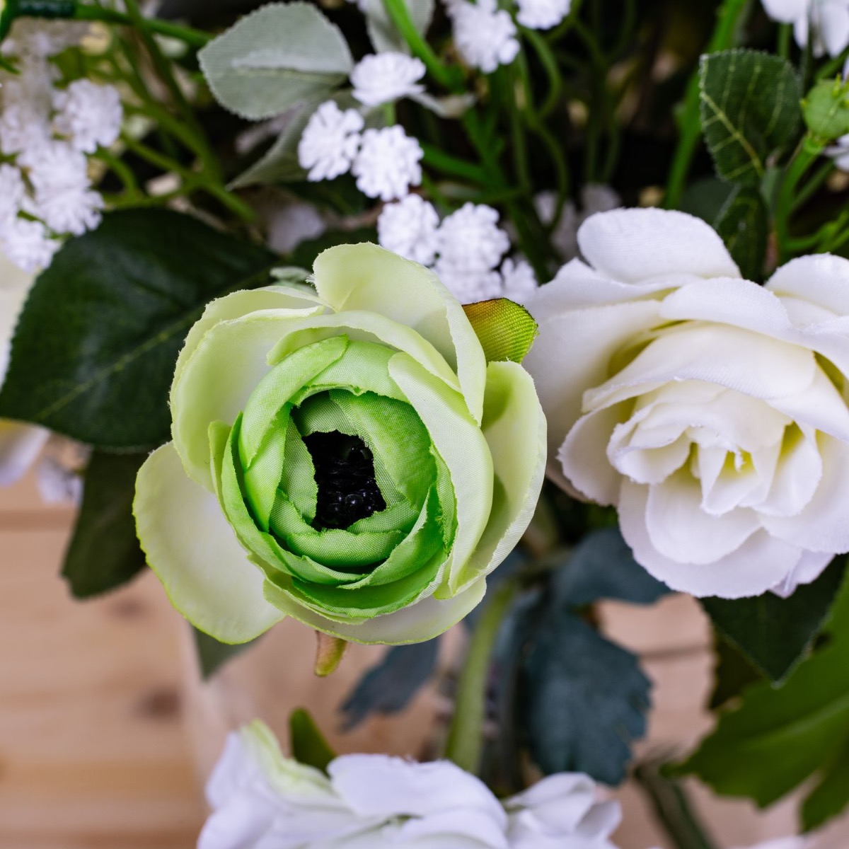 Sinfonia di fiori! Jana stava cercando un mazzo di fiori adatto alla sua tavola da pranzo. Il layout che dobbiamo mantenere in bianco e verde è un vero omaggio alla bellezza della natura. Con la sua combinazione armoniosa di diversi tipi di fiori, il set emana un'eleganza senza tempo ed è perfetto per aggiungere un tocco speciale ad ogni occasione. Vorresti anche tu avere un mazzo di fiori così bello? Acquista il look!