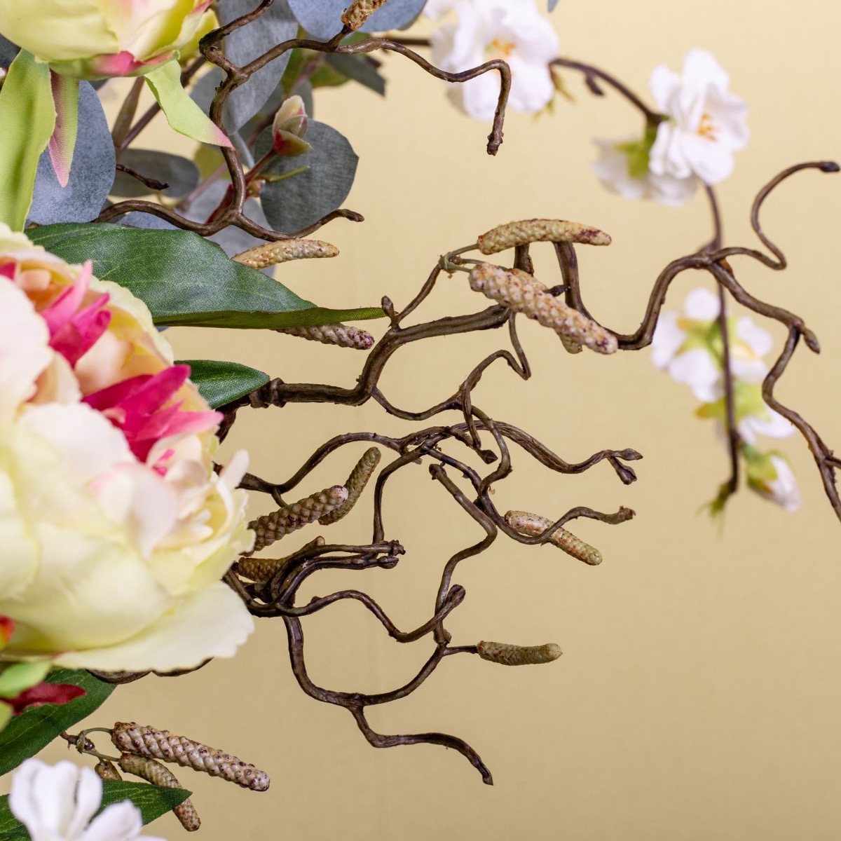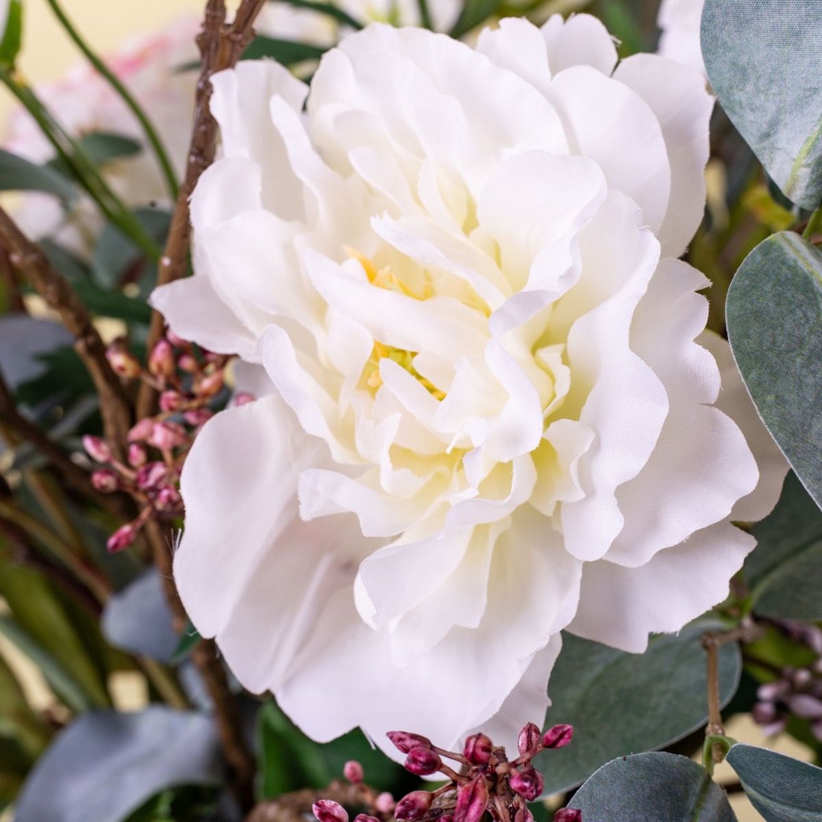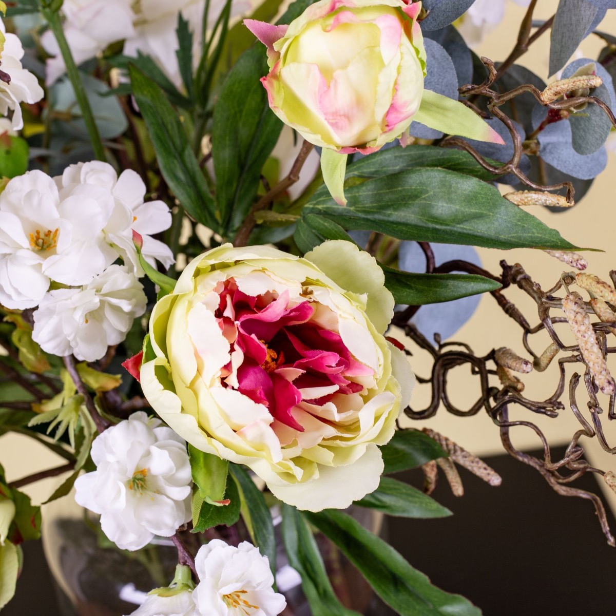 Suggerimento per il design: crea un bouquet selvaggio e dall'aspetto naturale. Piega leggermente i rami dei fiori di ciliegio verso l'esterno e posiziona le peonie in primo piano per attirare l'attenzione. Legateli con un filo e tagliateli alla dimensione di un vaso.