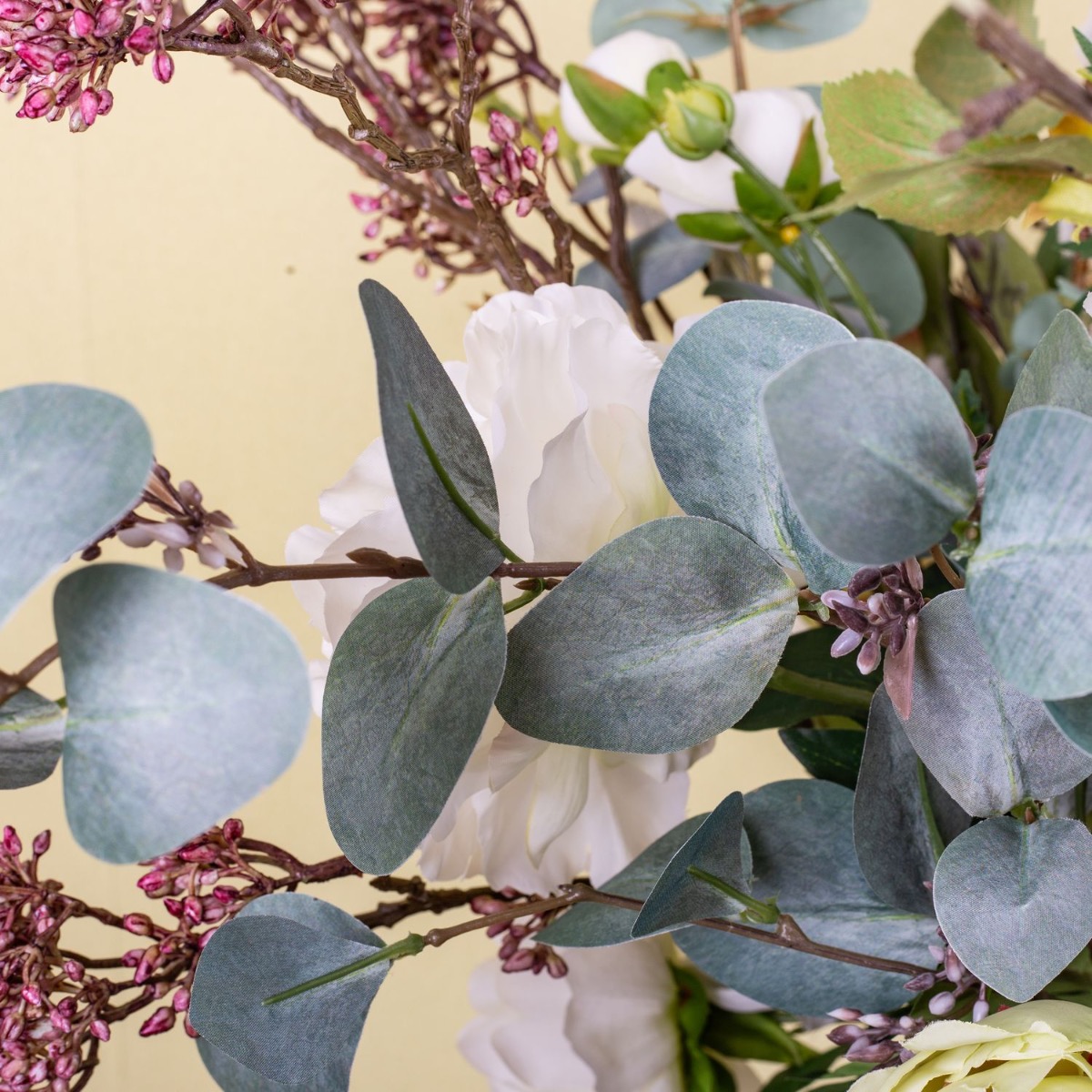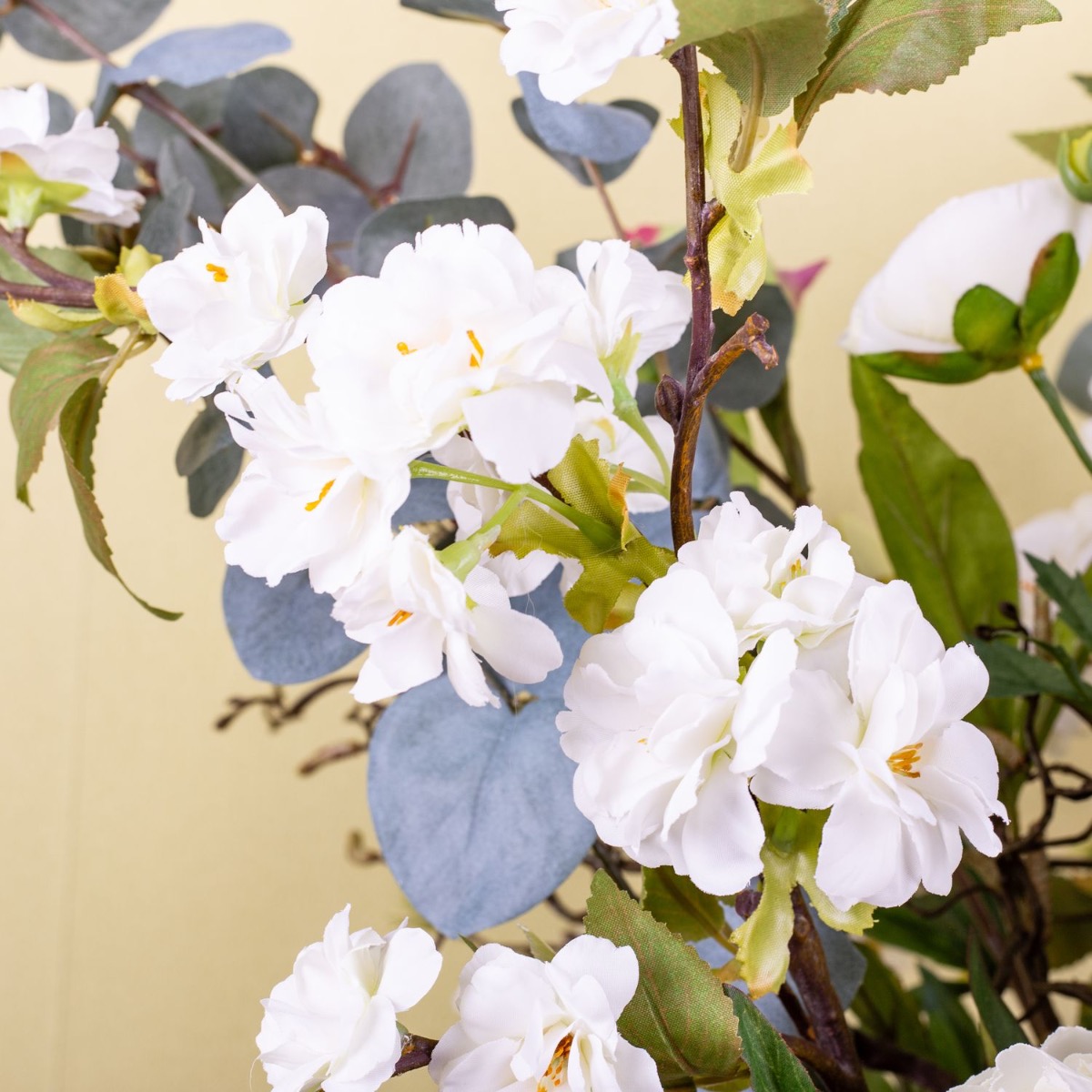 Fiori di melo e peonie! Questa è una tipica giornata di inizio estate. Splende il sole e finalmente fa di nuovo caldo. Non vedi l'ora che arrivi l'estate e ti godi i colori vivaci e i fiori magici della natura. Questo bouquet sembra un abbraccio floreale, con le sue delicate peonie gialle e fiori di ciliegio bianchi circondati da rami di eucalipto grigio-verde. È esattamente così che la nostra cliente Isabel ha immaginato il suo bouquet nel corridoio di nuova concezione, una bellissima decorazione per ogni casa. Acquista il look!