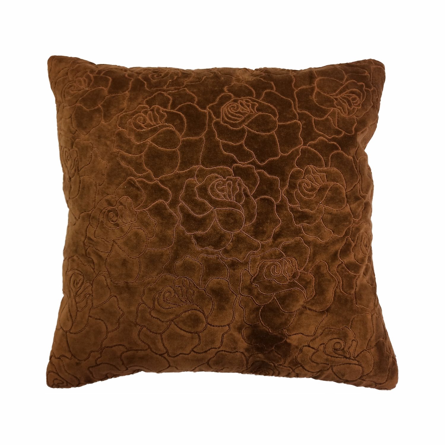 Cuscino in velluto ALAIA, motivo a rose, marrone cioccolato, 45x45cm