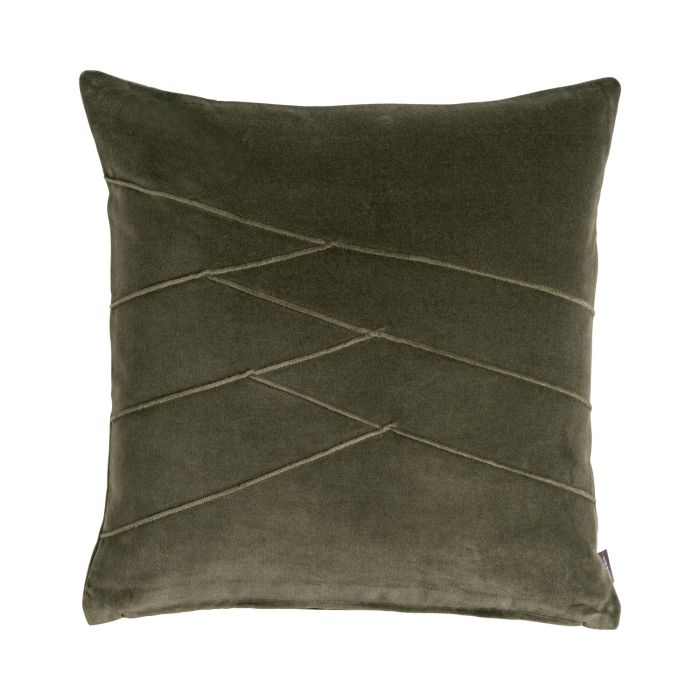 Cuscino in velluto NOELANI, cuciture decorative angolate, verde oliva, 45x45cm