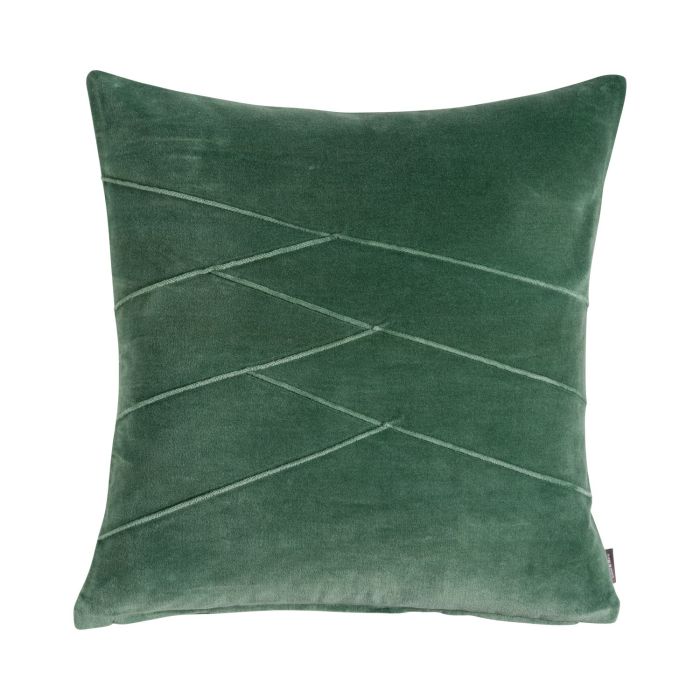 Cuscino in velluto NOELANI, cuciture decorative angolate, verde scuro, 45x45cm