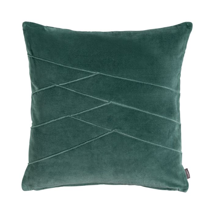 Cuscino in velluto NOELANI, cuciture decorative diagonali, verde-blu, 45x45cm