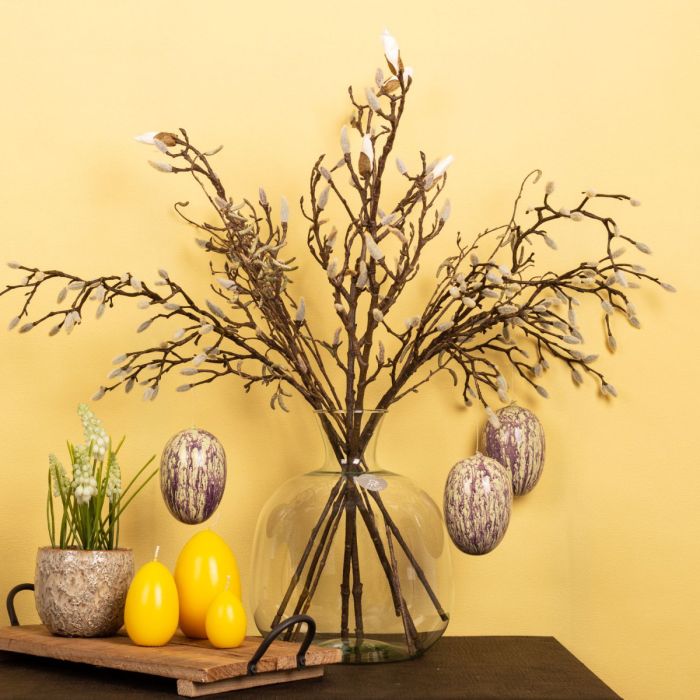 Consiglio di design: Scegliete il colore delle uova di Pasqua in modo che questo look non sia troppo colorato. Distribuite i rametti in modo uniforme nel vaso.