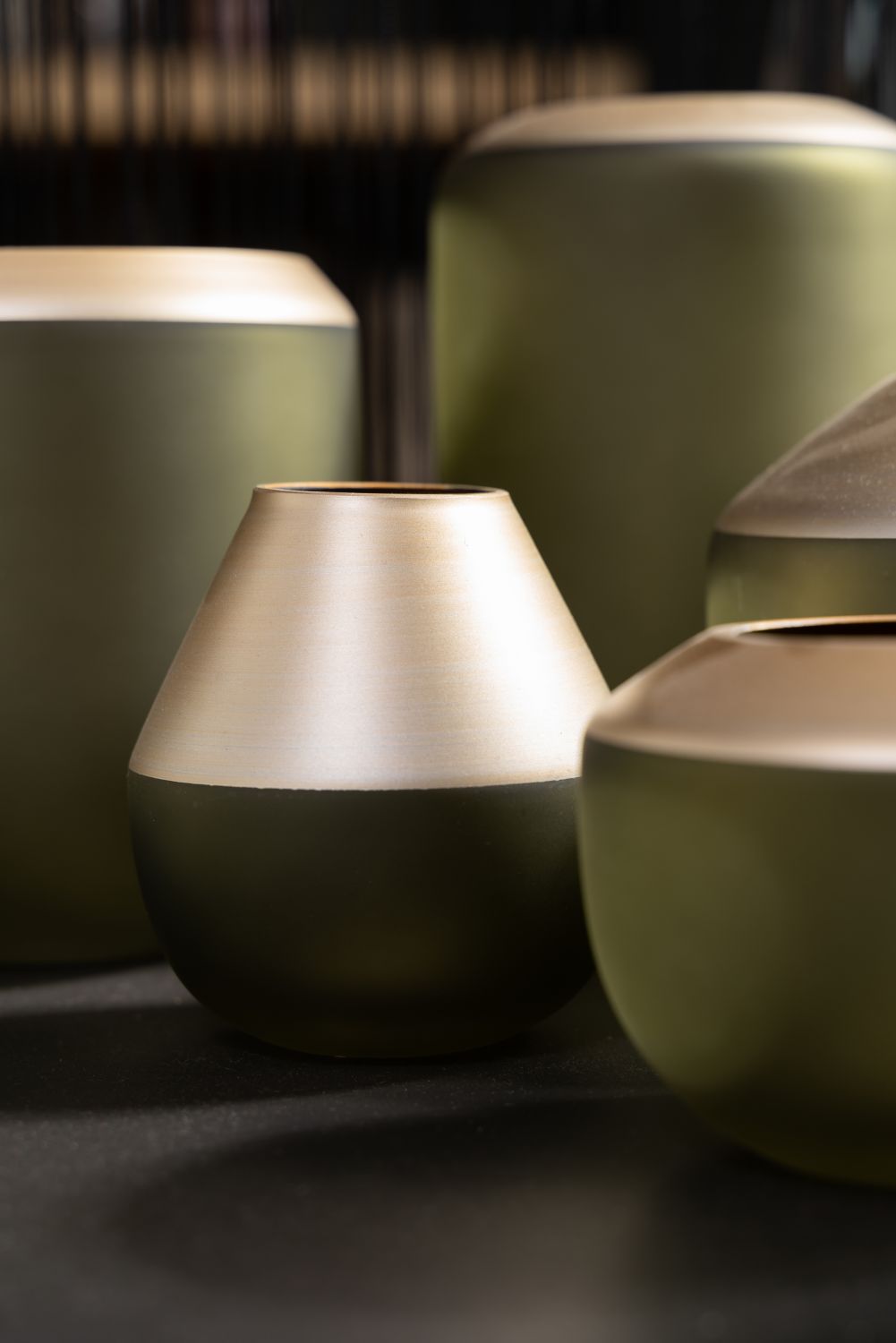 Elegante vaso da fiori GORDEN in vetro, verde-rosa, 12cm, Ø11cm