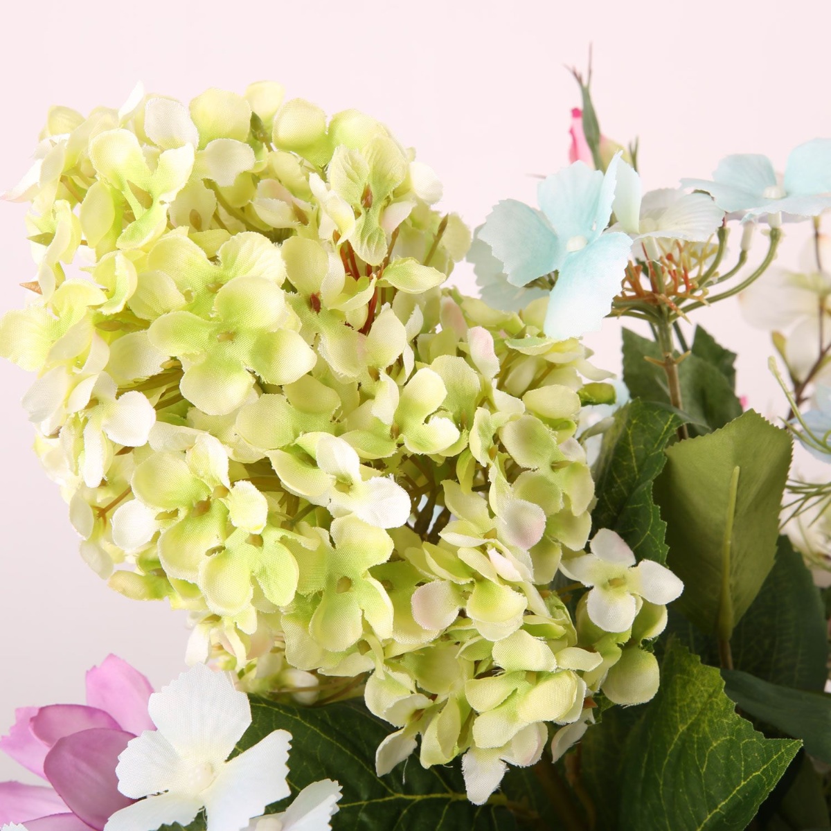 Consiglio di design: Disporre i fiori in un bouquet naturale. L'ortensia deve essere al centro. Legateli strettamente con spago di juta o filo di ferro e tagliate i gambi alla stessa lunghezza.