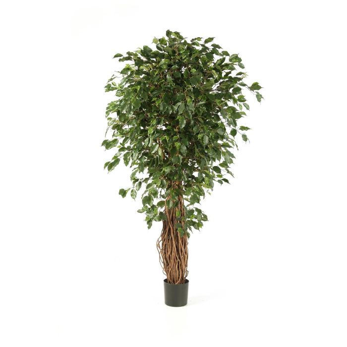 Ficus Benjamini finto LUCIUS, tronchi veri, verde, 120cm
