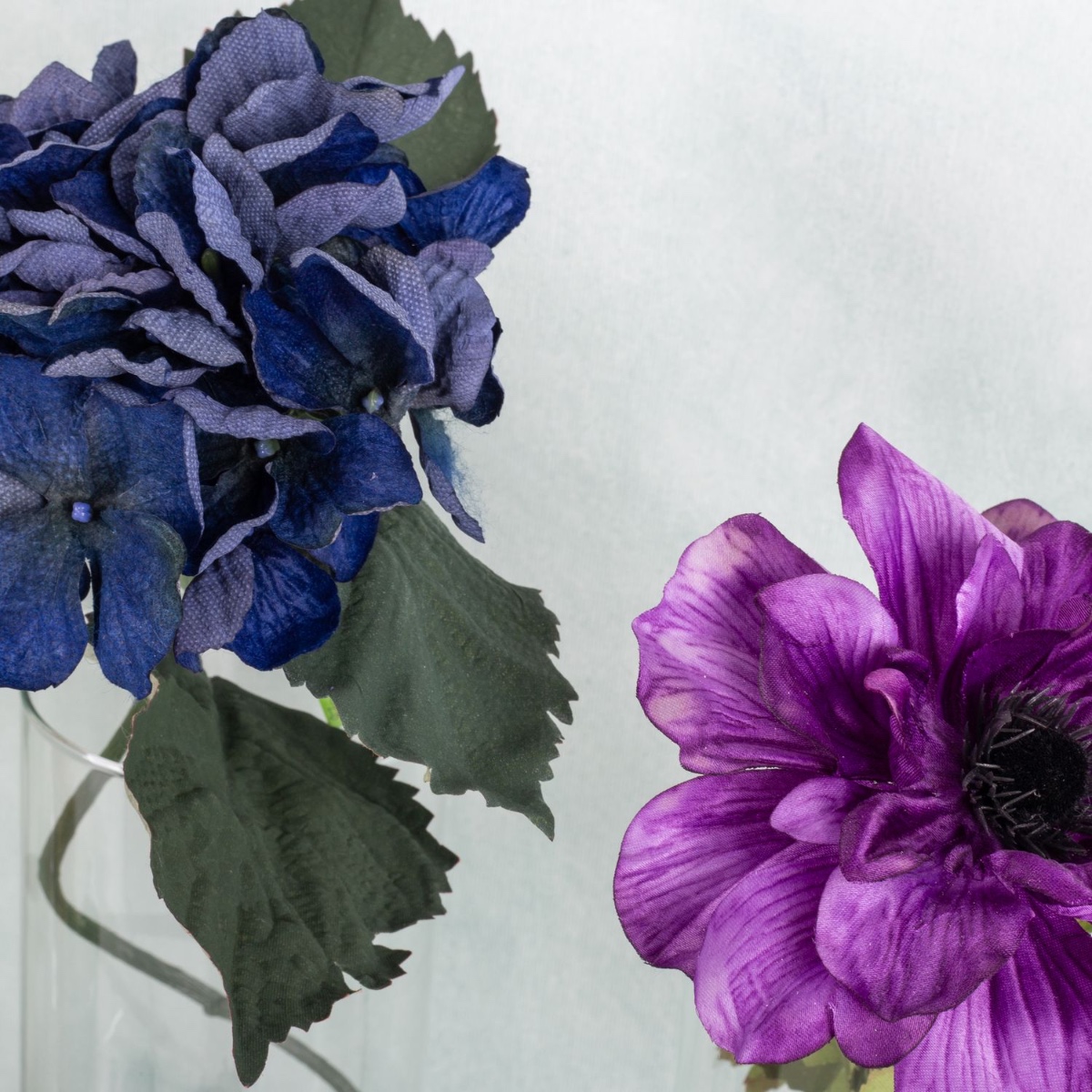 Suggerimento di allestimento: disponi i vasi a distanza regolare e i bicchieri piccoli leggermente sfalsati davanti. Non accorciare i gambi dei fiori, ma piegali a spirale in modo che entrino bene nei vasi. Riempi il bicchierino con muschio di un colore abbinato al fiore dietro di esso.