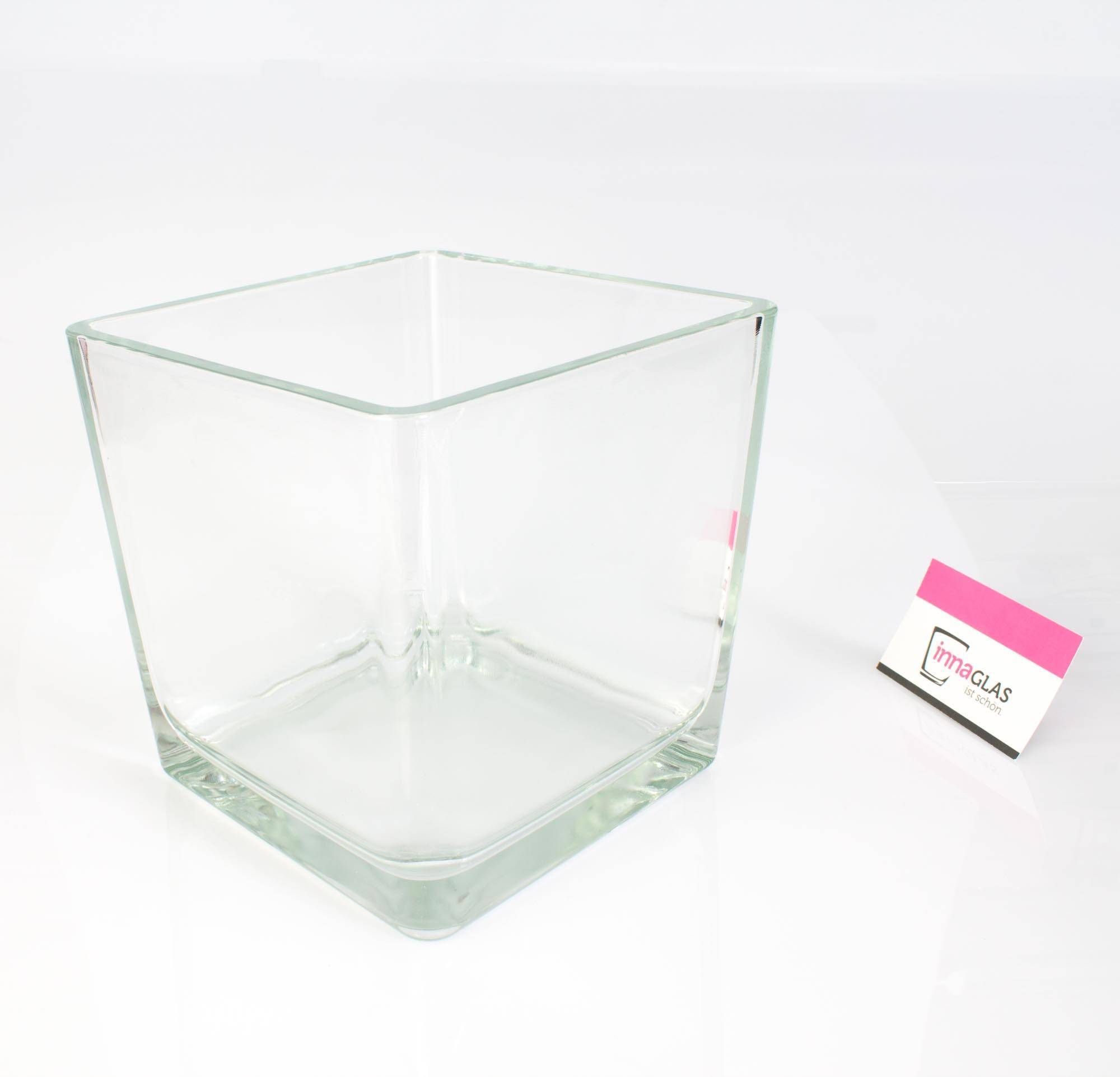 Voluminoso portacandela in vetro di forma cubica KIM EARTH con dimensioni pari a ca. 18 x 18 x 18 cm. Questo portacandela di INNA Glas risulta perfetto per accogliere da 1 fino a 9 candele.