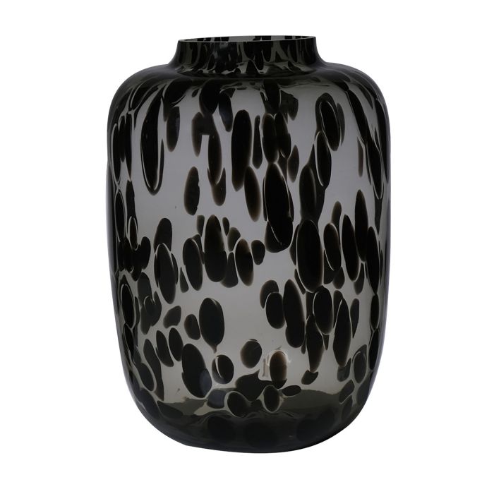 Grande vaso in vetro RUSSELL, motivo leopardato, nero-trasparente, 35cm, Ø24cm