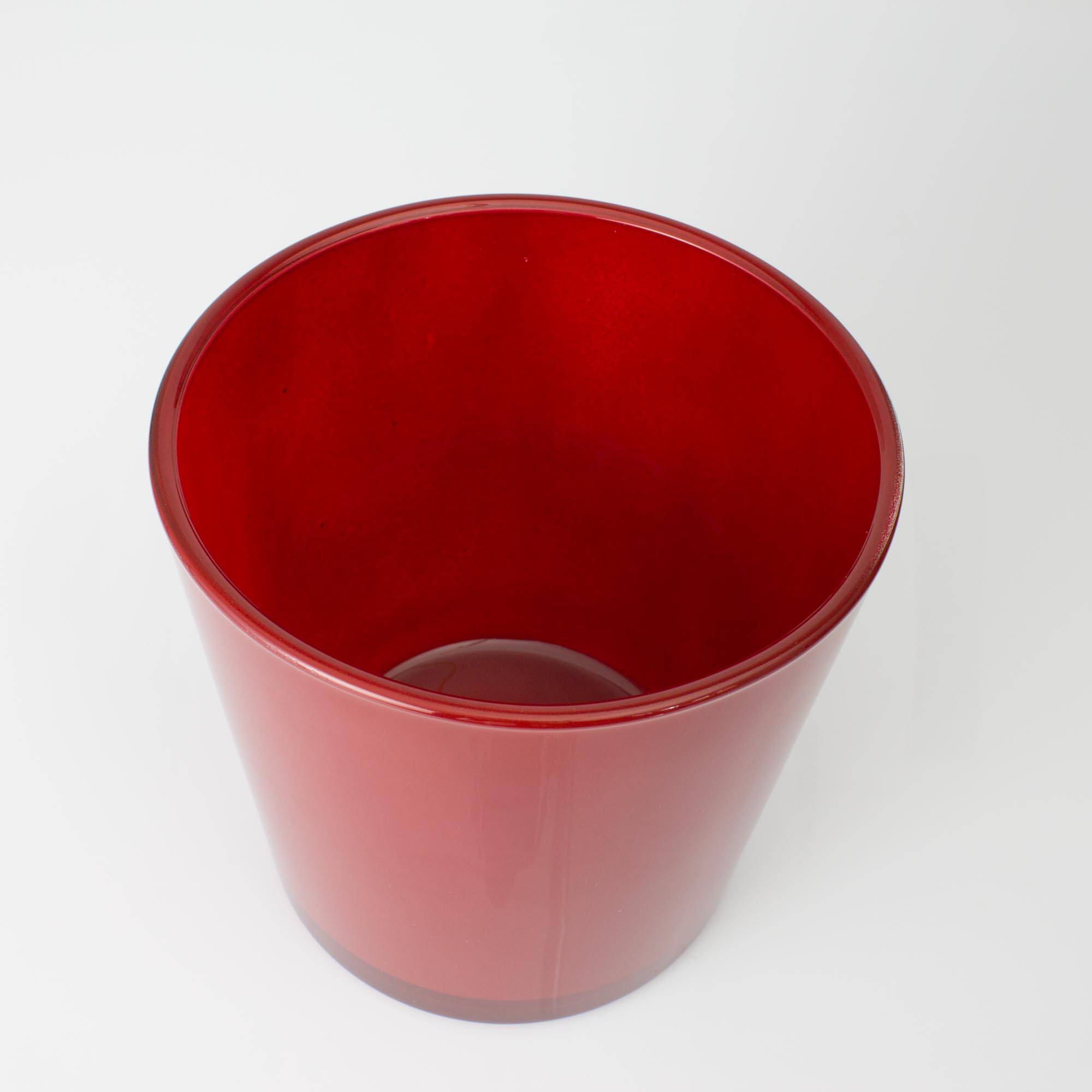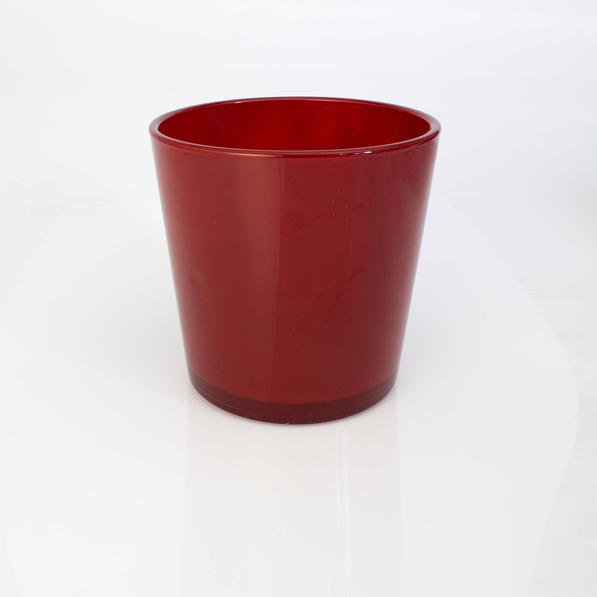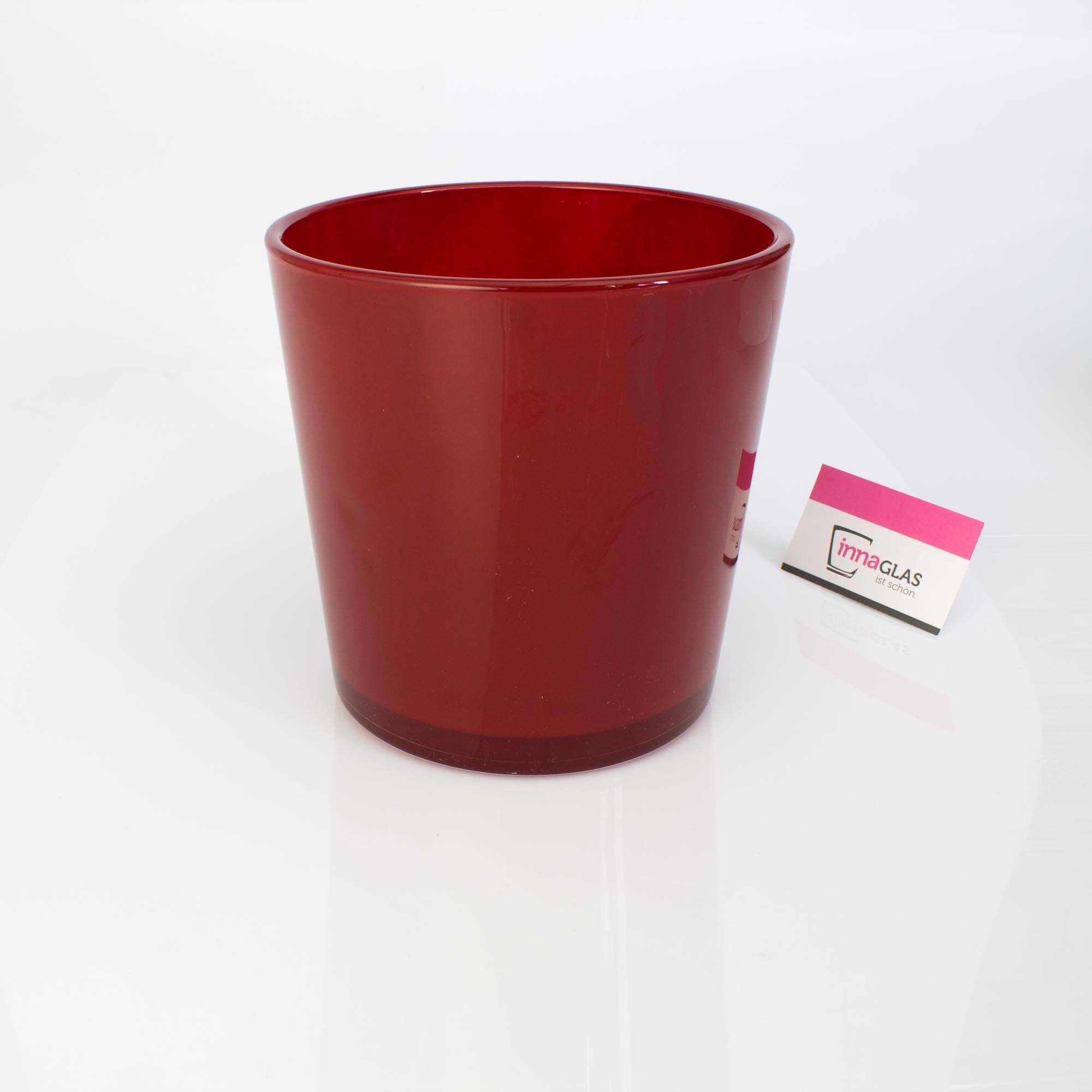Voluminoso portafiori ALENA color rosso, di INNA Glas. Il vaso da fiori con un'altezza di ca. 19cm e un diametro di ca. 18,5cm risulta adatto ad ospitare piccole piante come una yucca, dracena, orchidea e altre ancora.