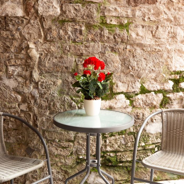 Un colore rosso vivo! I gerani non passano mai di moda. In estate, spesso abbelliscono le ringhiere dei balconi con i loro colori vivaci. Il nostro geranio rosso fuoco sembra vero, quindi bisogna fare attenzione a non innaffiarlo accidentalmente, perché i granuli di piantagione, adatti anche alle piante vere, sono un vero invito a farlo. Acquista il look!