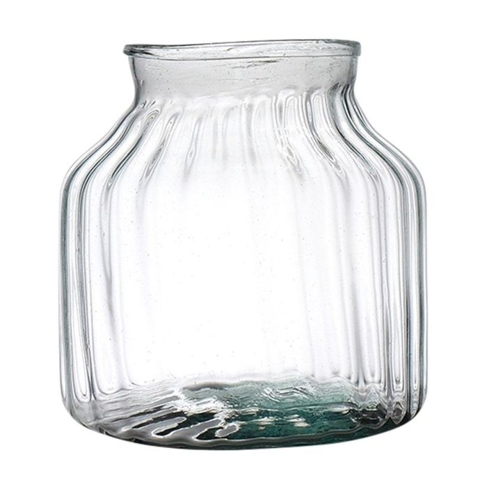 Lanterna in vetro QUINN EARTH con scanalature, riciclato, verde-trasparente, 20cm, Ø21cm
