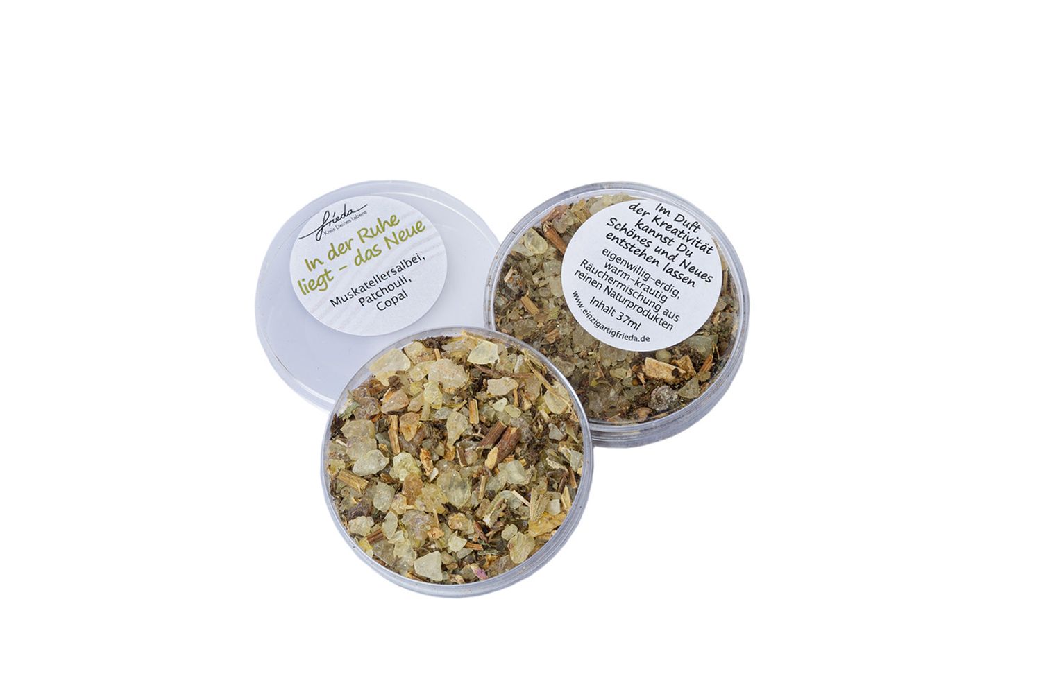 La miscela d'incenso può essere utilizzata su un bruciatore d'incenso con una piccola candela o su carboncini d'incenso in un bruciatore d'incenso. Se si utilizza un bruciatore di incenso, la miscela di incenso viene posta sul setaccio; è consigliabile mettere un pezzo di foglio di alluminio sul setaccio, in modo che i componenti oleosi non colino nella fiamma e le erbe non brucino troppo rapidamente. Un altro vantaggio è che il foglio di alluminio impedisce al setaccio di attaccarsi e quindi non deve essere pulito. Il calore dell'accendino riscalda l'incenso che inizia a profumare. Quando si utilizza un bruciatore d'incenso, si mette prima la sabbia nella ciotola come isolante termico e poi si mette il carbone d'incenso / le tavolette di carbone sopra. Si accende la carbonella e si attende fino a quando la carbonella non si è incendiata. Solo a questo punto la miscela di incenso viene posta sul carbone, che immediatamente si illumina ed evapora, rilasciando il profumo della miscela. Con questo metodo, tuttavia, non è possibile influenzare la velocità di combustione degli ingredienti. A seconda della miscela di incenso, si deve decidere in anticipo quale sia il metodo migliore. È importante utilizzare una base ignifuga per entrambi i metodi di applicazione e non lasciarla mai incustodita.