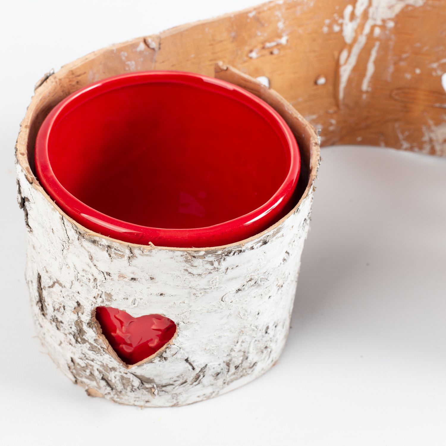 Nastro artigianale in corteccia di betulla HERZIG con motivo a cuore perforato, bianco, 10x250cm