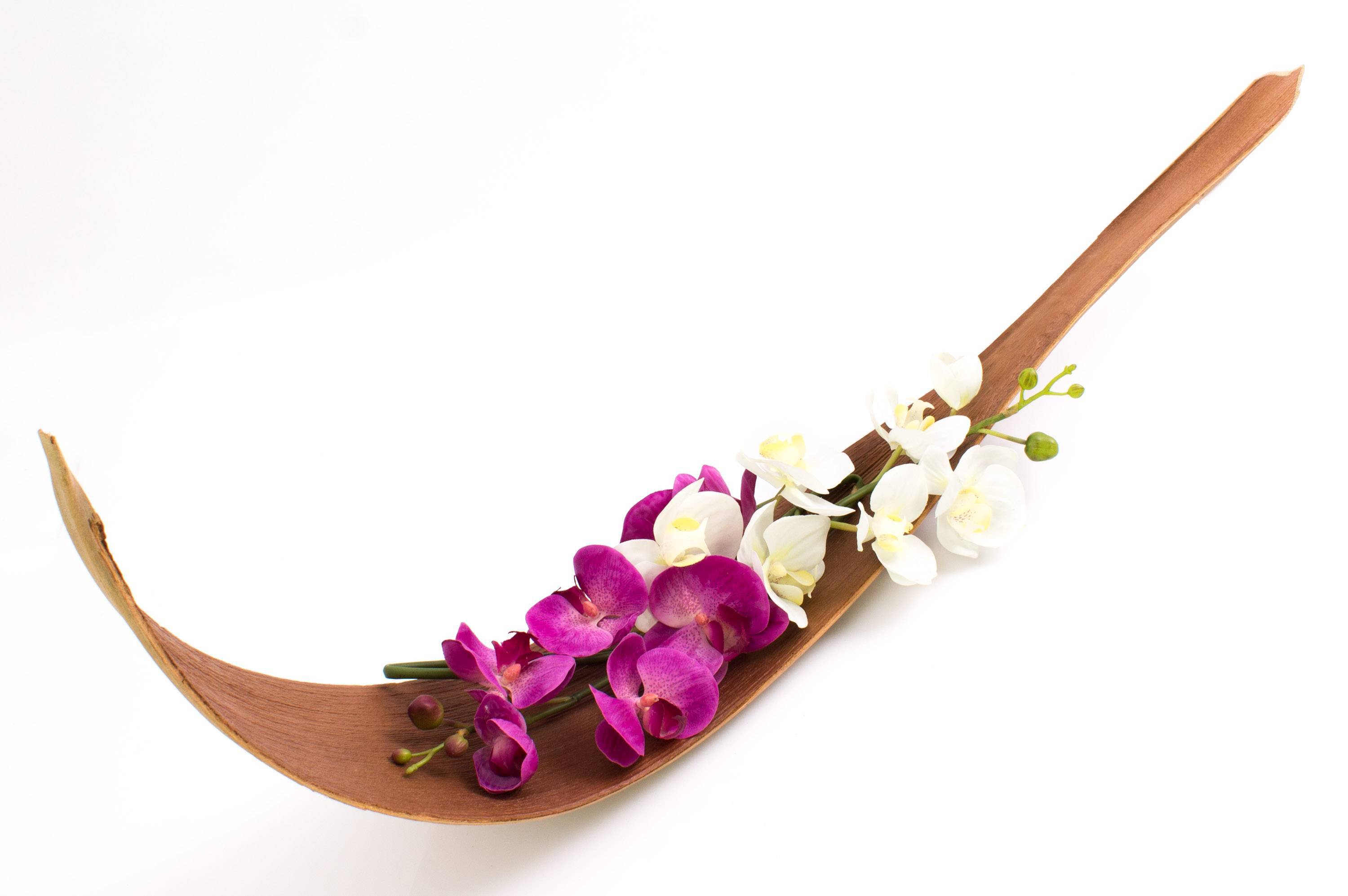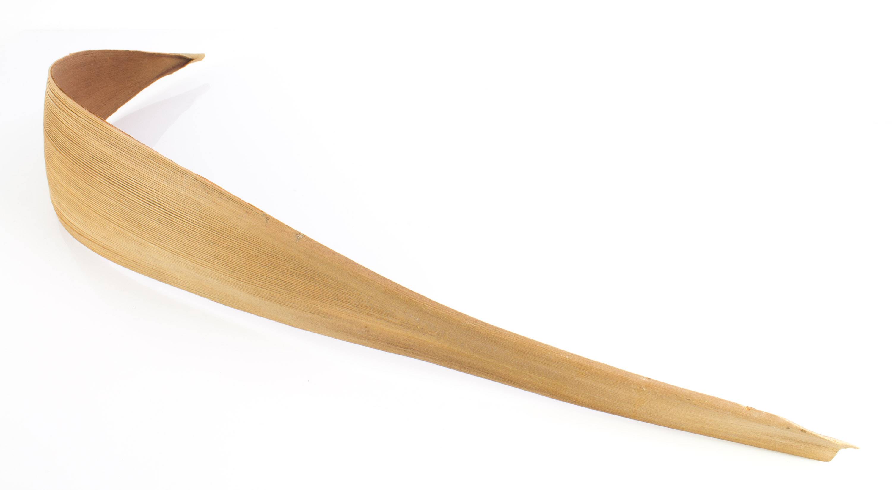 Foglia di cocco sciolto essiccato in una grande dimensione di ca. 115 cm di lunghezza. La foglia piegata è naturale e rimane tale per le decorazioni anche come mostrato. Poiché questi articoli sono unici, ogni foglio ha il suo colore e la sua forma.